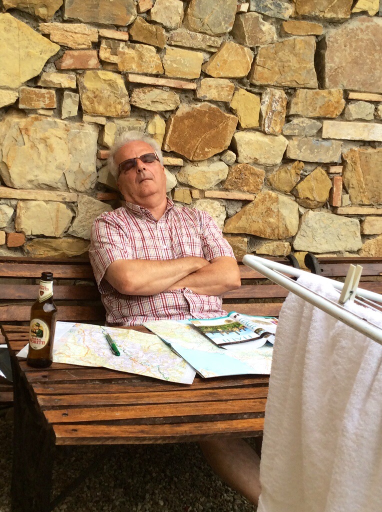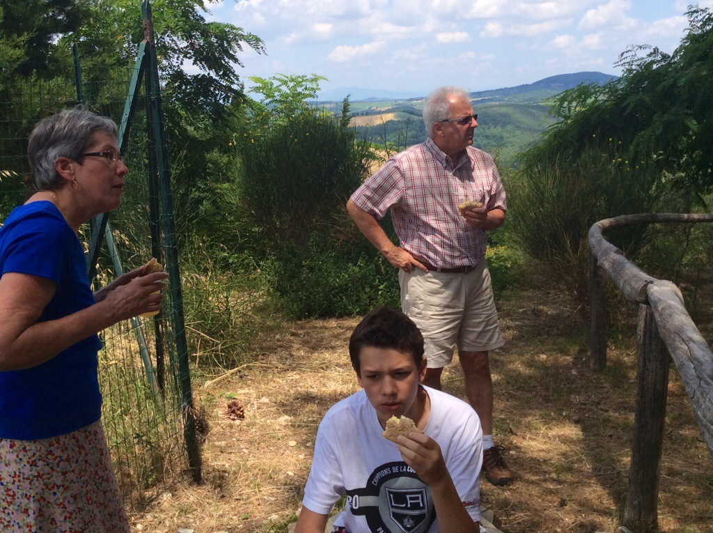 La distance séparant Florence de notre nouvelle destination, Ormanni, étant assez courte et notre appartement n’étant disponible qu’un peu plus tard en après-midi, nous parcourons de petits bourgs dont celui de San Donato, où nous prendrons probablement le temps de retourner tellement il était charmant. Un peu plus tôt, nous nous étions arrêtés dans un stationnement offrant une splendide vue sur les collines pour casser la croûte, un lunch préparé le matin même. C’était trop beau pour durer, la propriétaire nous a gentiment demandé de quitter, c’était privé…. Voir photo prise à la dernière minute.
