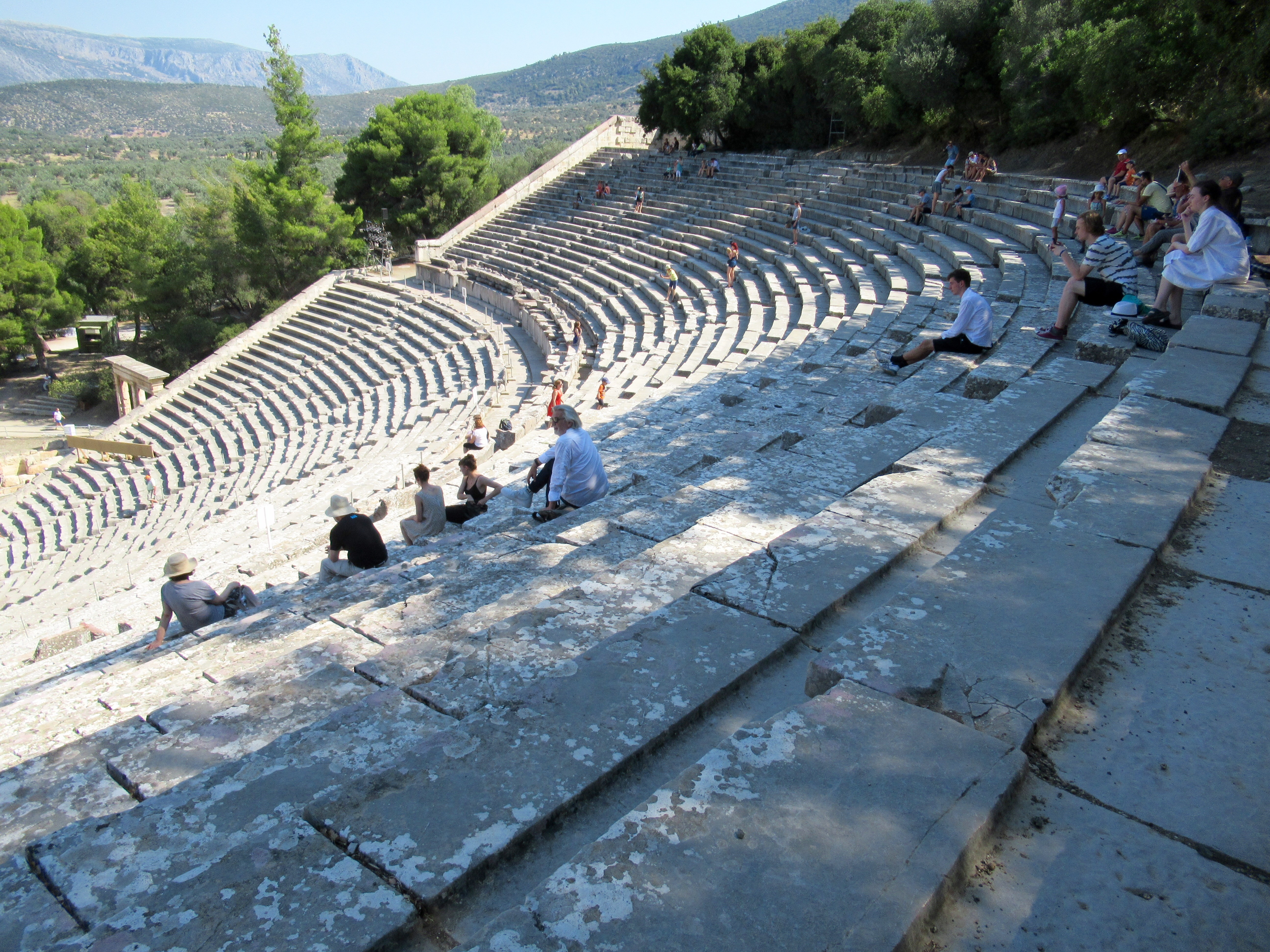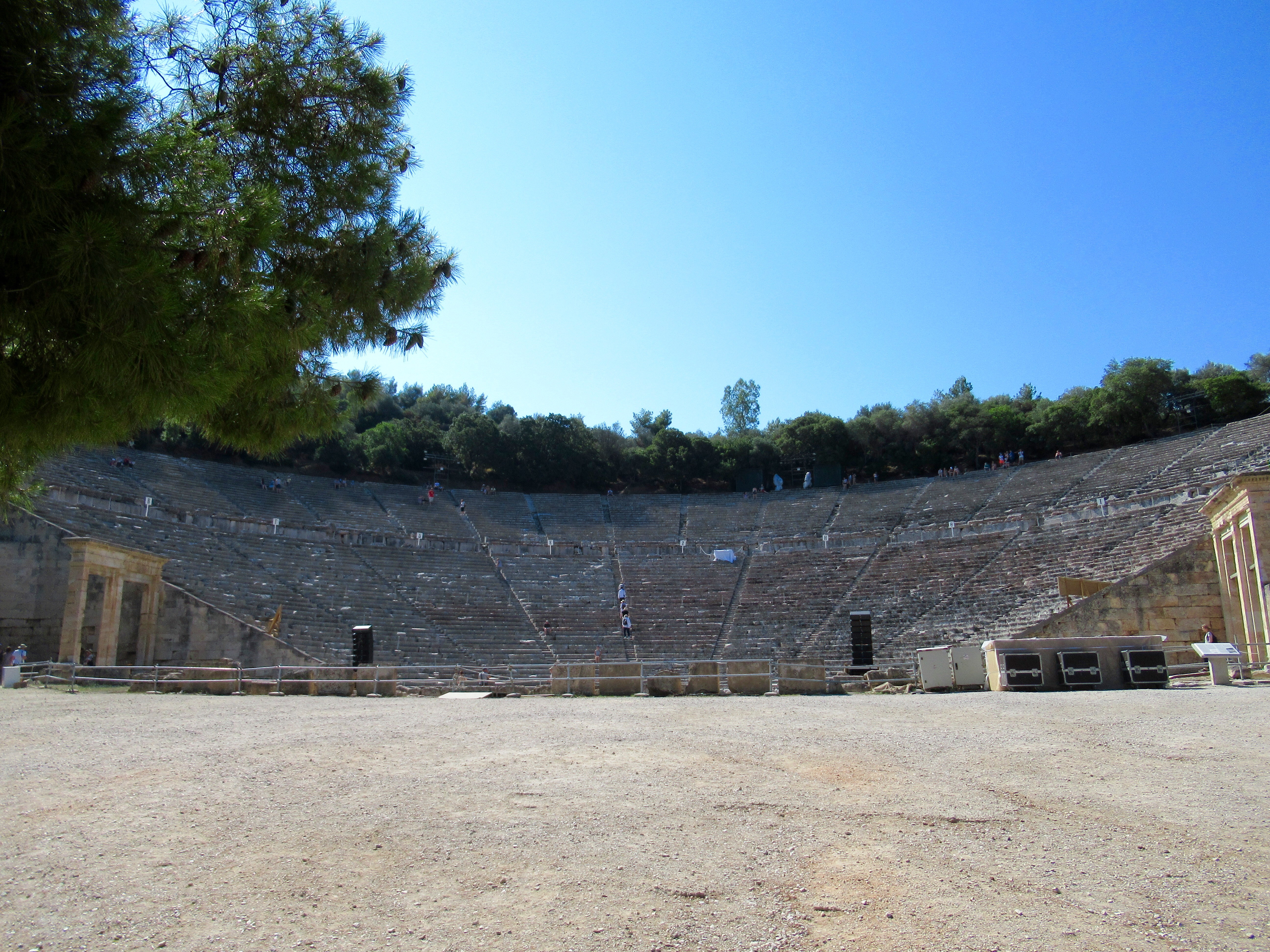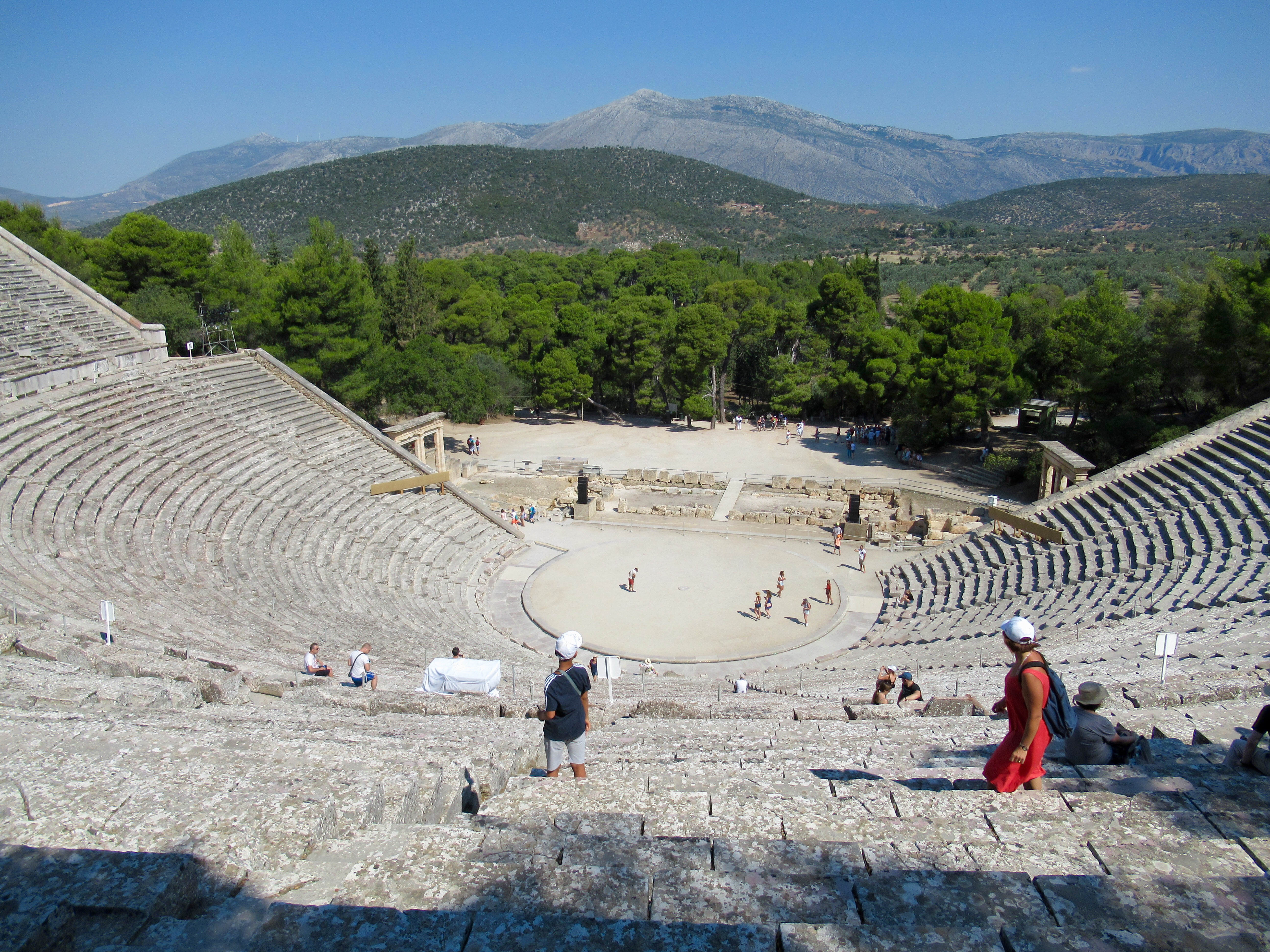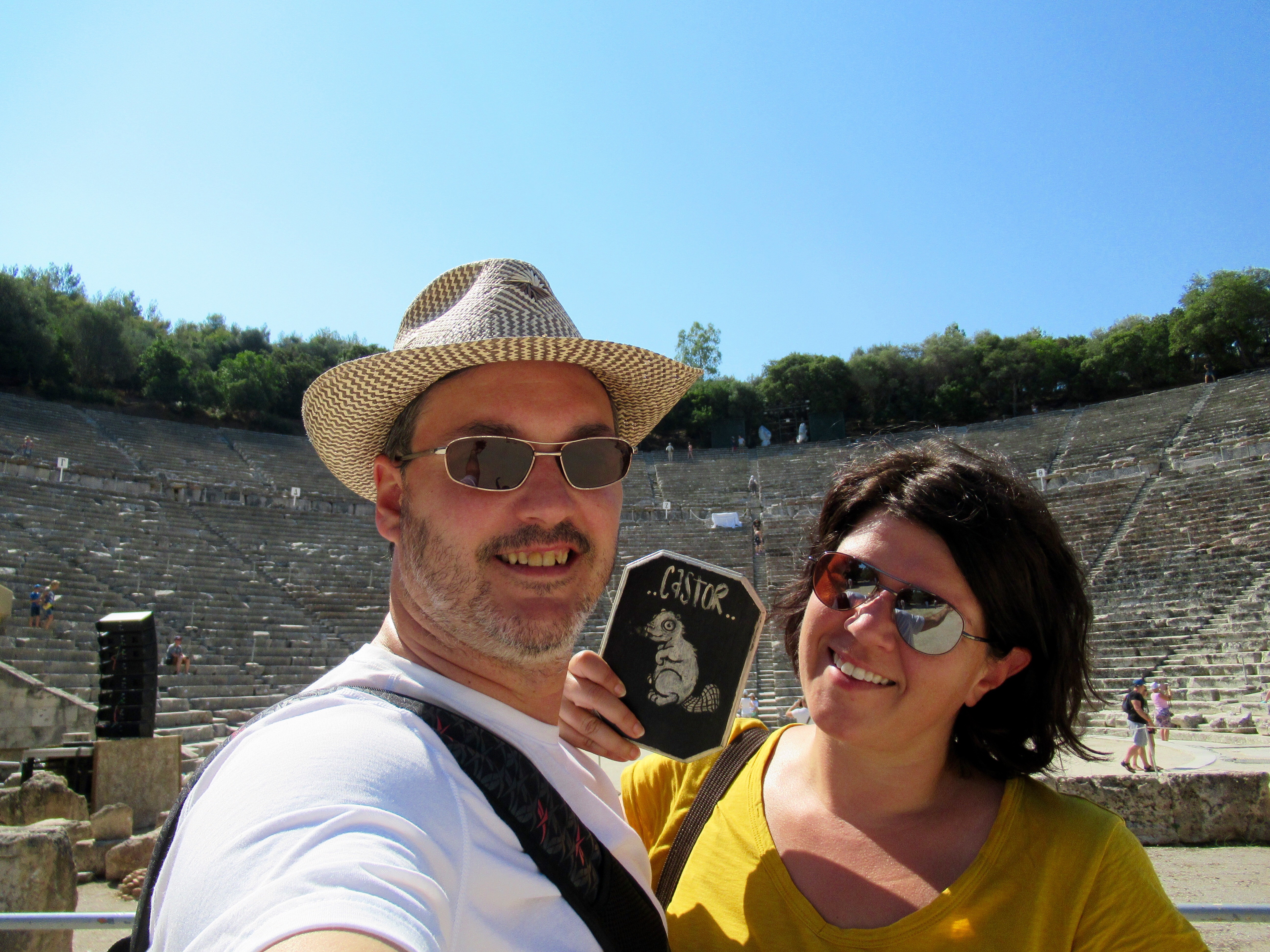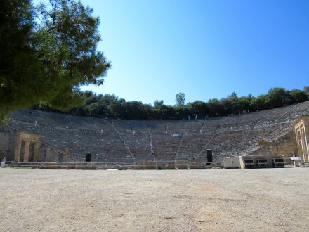 Si ce n’est que le champ de ruines et de fouilles archéologiques encore actuelles, Epidaure (3e siècle avant J.-C.) se démarque par son théâtre extrêmement bien conservé selon notre expérience des vestiges grecs. L’acoustique y est exceptionnelle encore à ce jour et c’est pourquoi c’est un lieu vivant de tragédies grecques en ces temps modernes et de concerts en plein air. Nous n’avons pas eu l’audace de pousser la note sur la scène centrale mais certains l’ont fait pour nous! Incroyable! Le reste n’est qu’histoire…