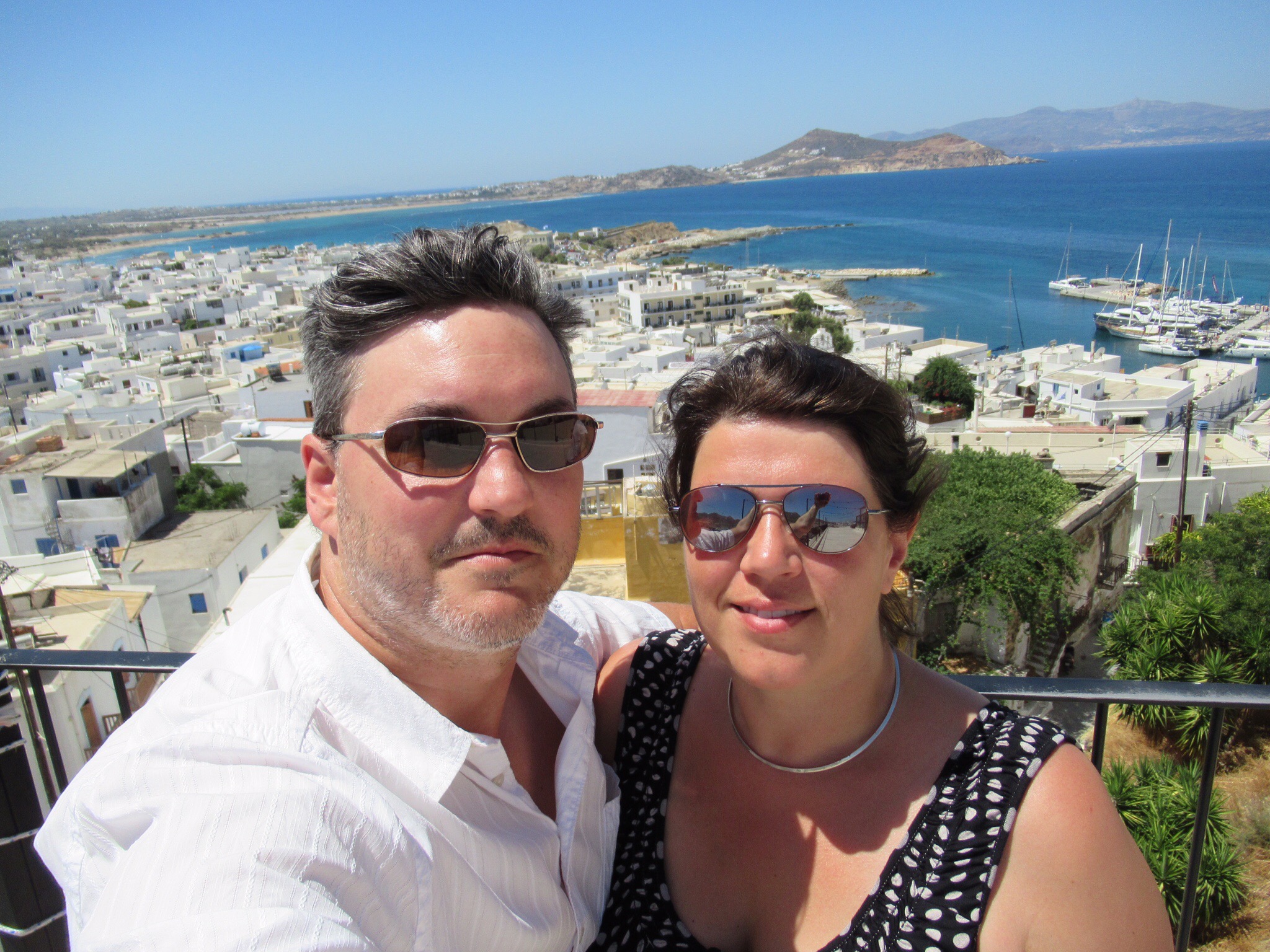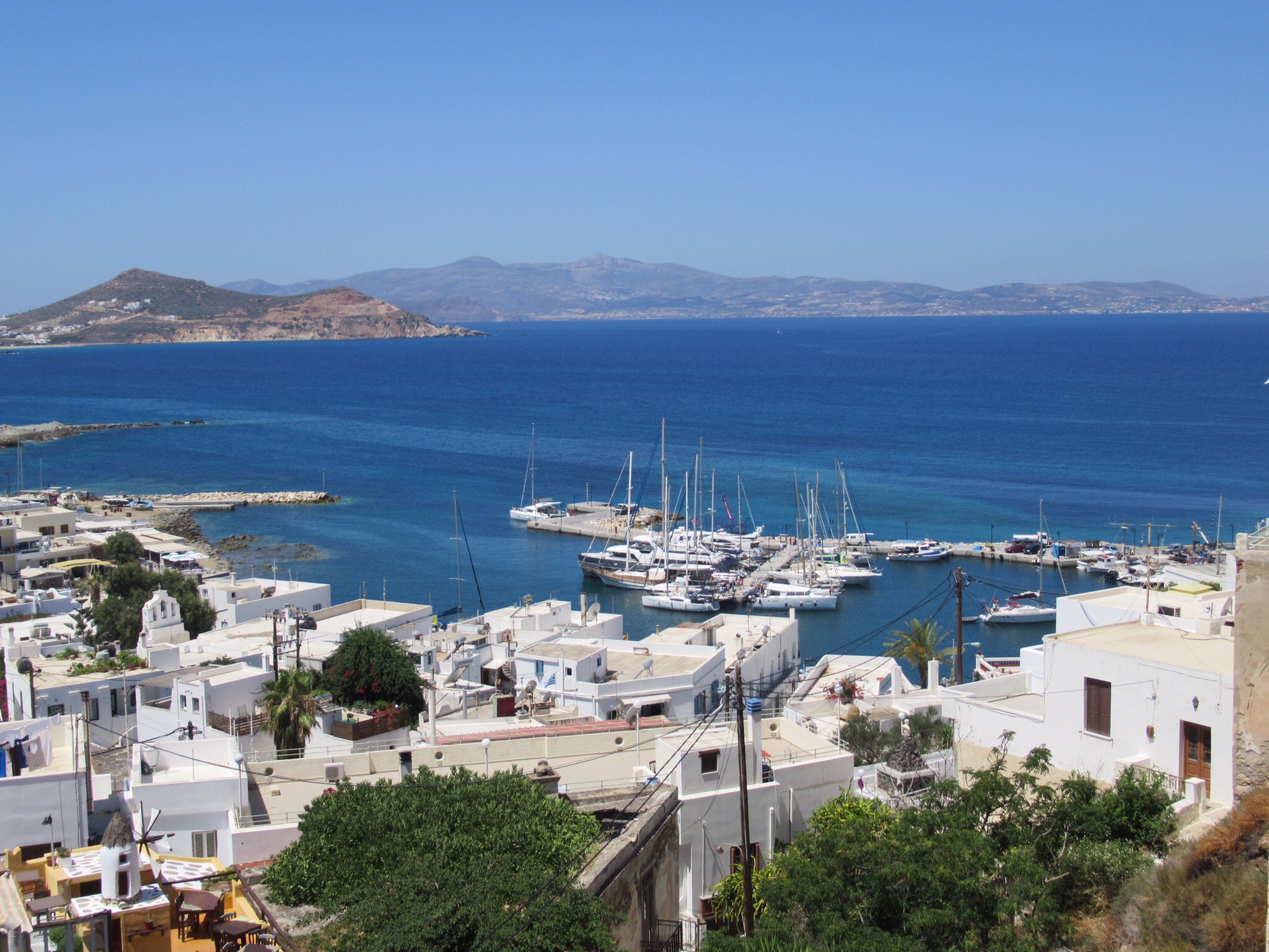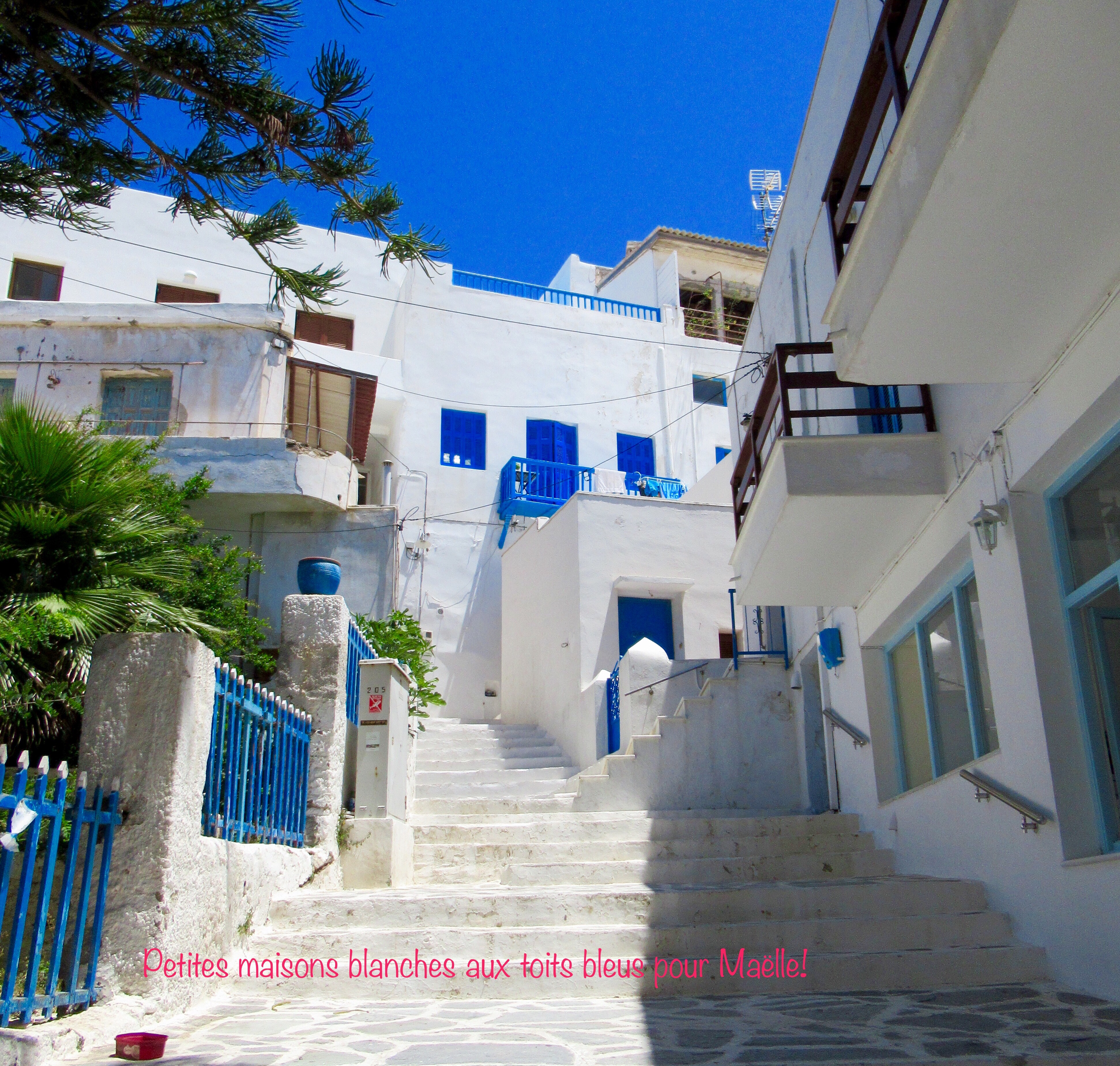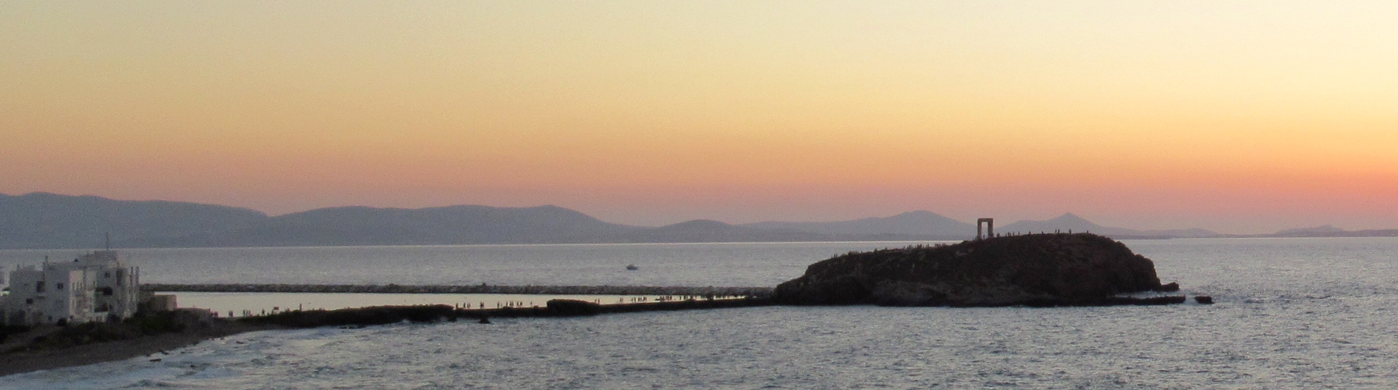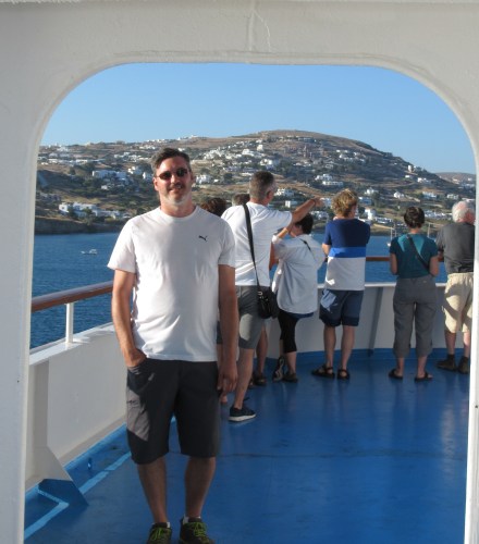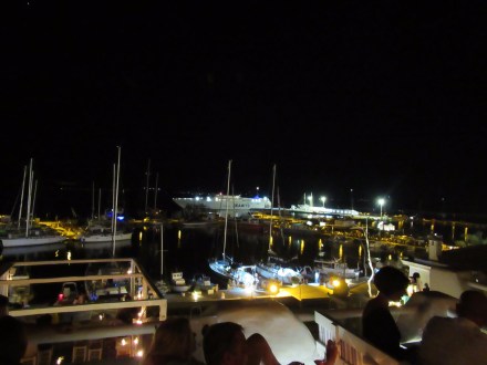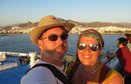 Nous vous présentons ce soir des images de notre traversée(6 heures) du port d’Athènes à Naxos, la plus grande île des Cyclades où nous séjournons 5 nuits. Arrivée majestueuse à la proue du navire lorgnant le port étroit de Hora avec la porte d’Apollon sur la gauche que Mélanie voulait tant admirer… Dès que nos pieds touchent terre, nous comprenons que c’est touristique jusqu’à la dernière pierre! La « main » rappelle celle de toutes les villes de bord de mer avec ses restaurant, commerces de souvenirs et bars. Trop fatigués pour apprécier pleinement la nourriture du Meze2 (sardines grillées, fromage « lokal » frit et entrées tapenades) qui débordent de clients, nous retournons nous coucher dans le logis de Janine.