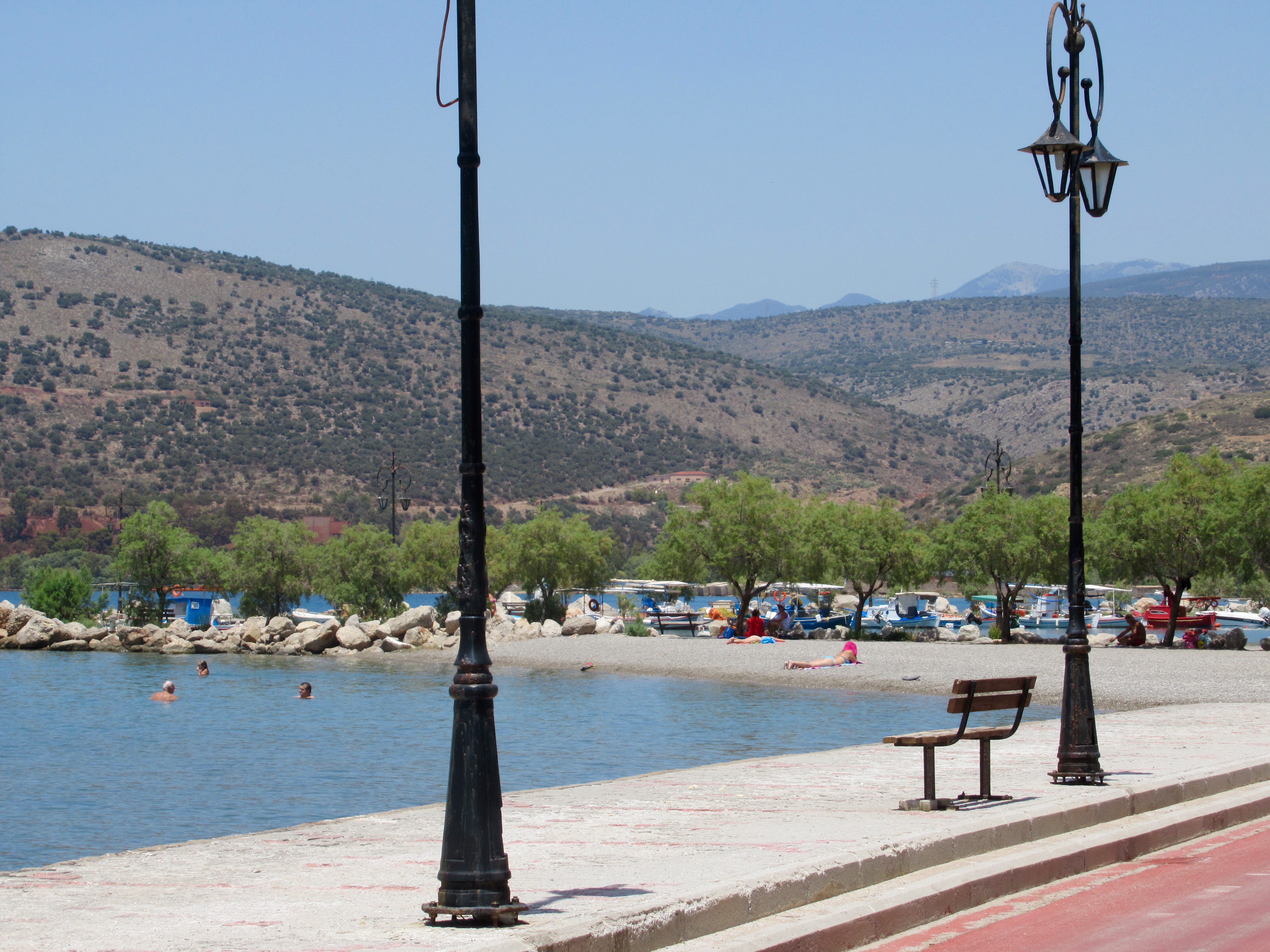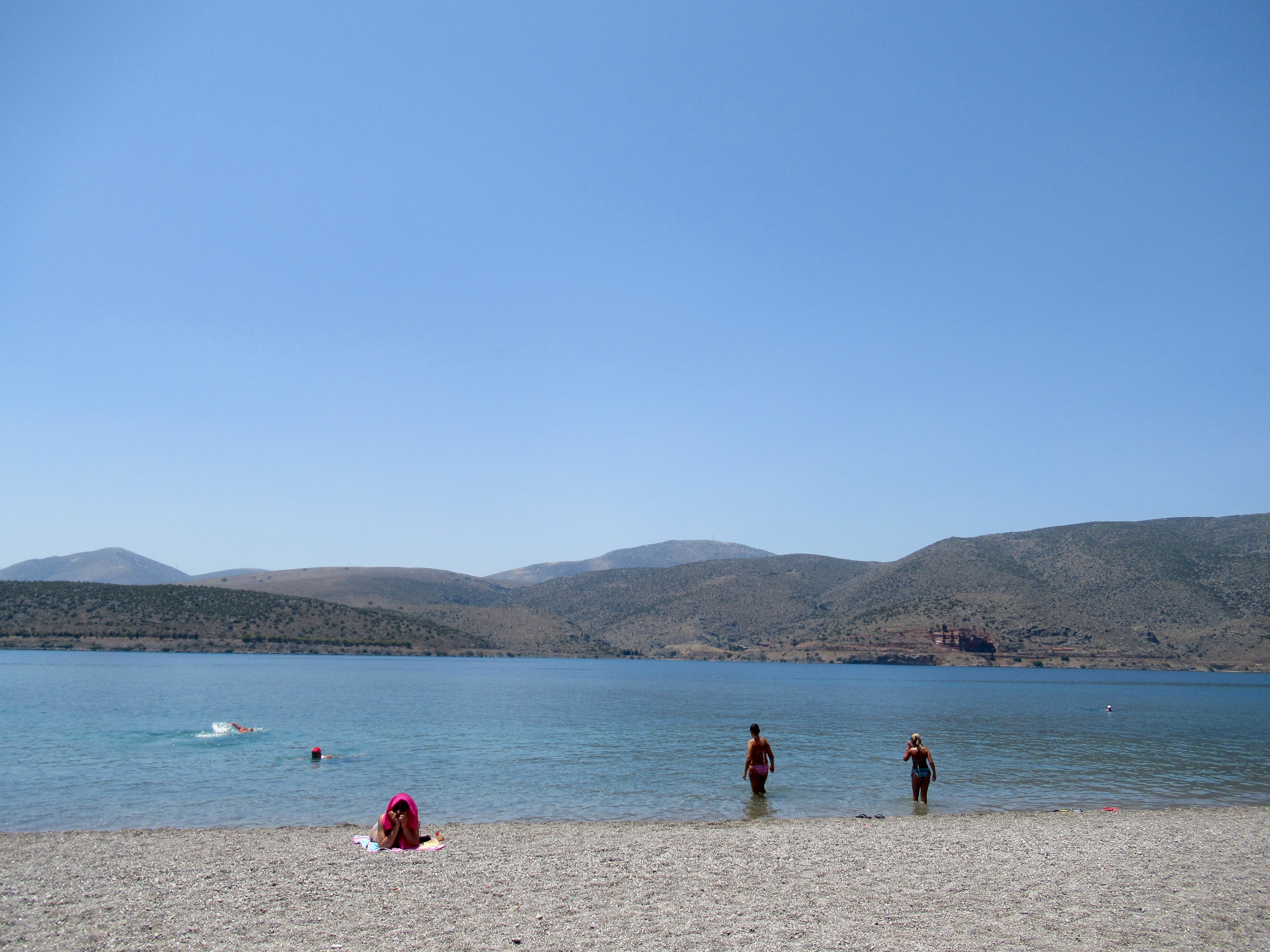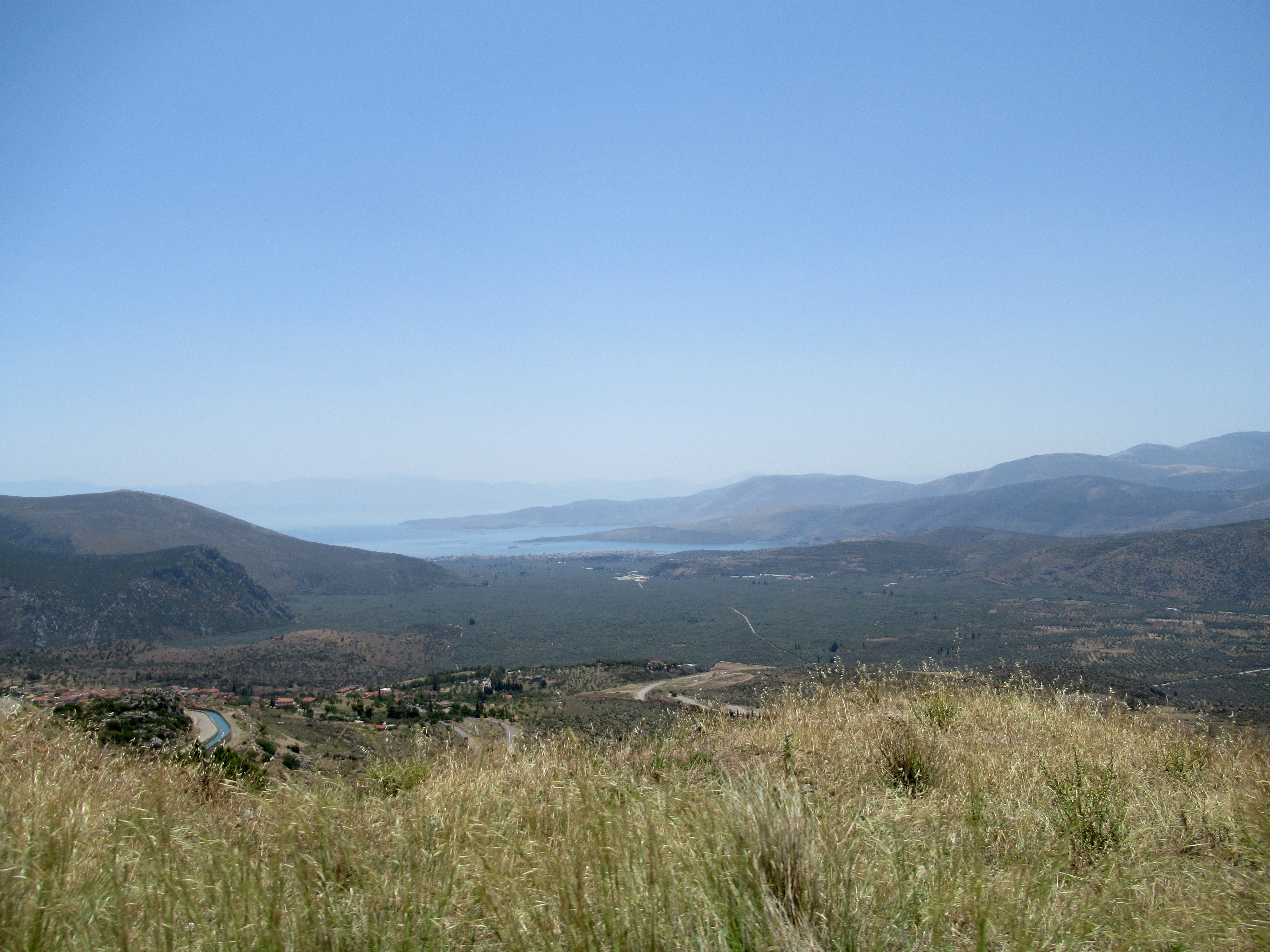 Après cette historique visite, nous plongeons dans nos guides afin de trouver un coin de plage. La plus près s’avère être celle d’Itea à quelques 20 km. Les routes tortueuses de la vallée du Pleistos nous y conduisent et nous permettent de traverser la mer d’oliviers qui en compte 400 000. Nous trouvons une petite plage publique et profitons une première fois depuis le début de notre périple d’une pause baignade dans ce majestueux décor du Golfe de Corinthe.