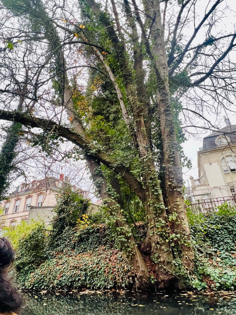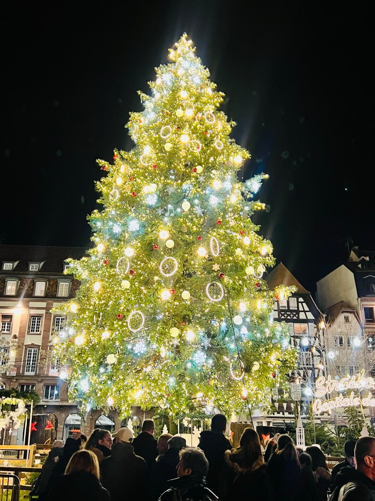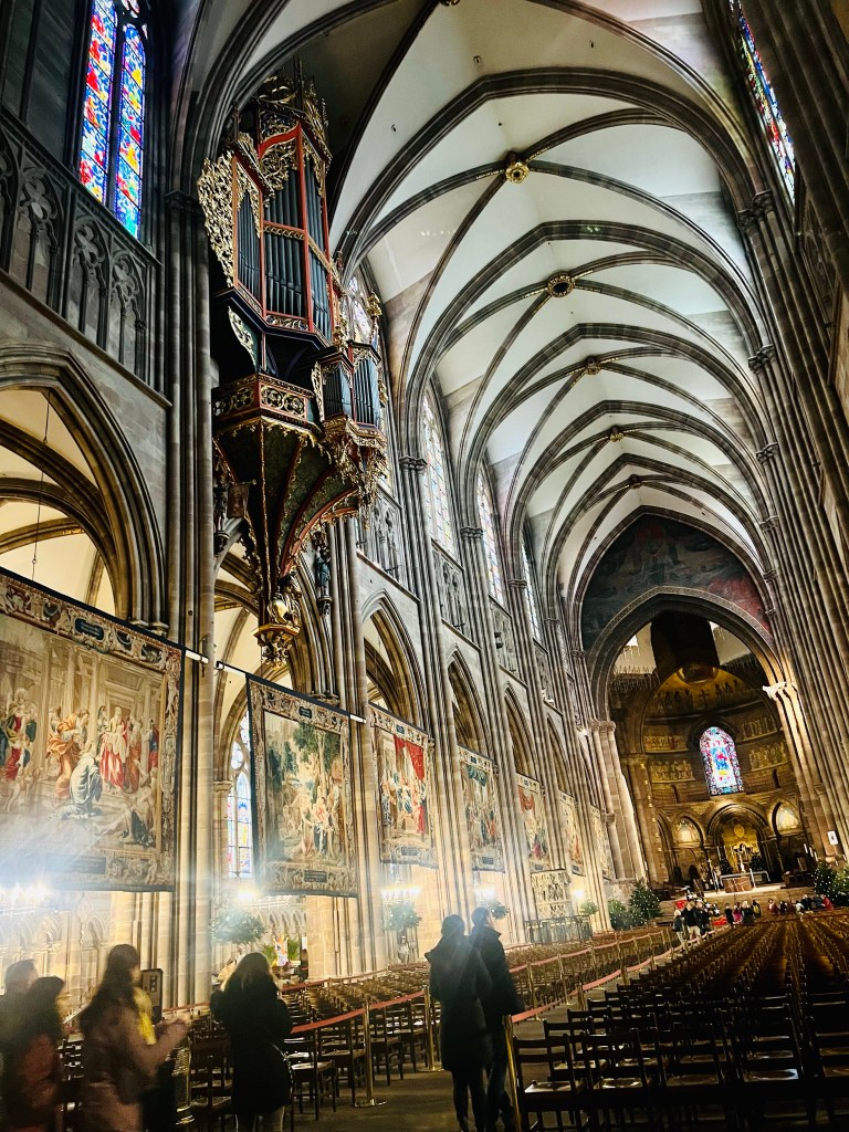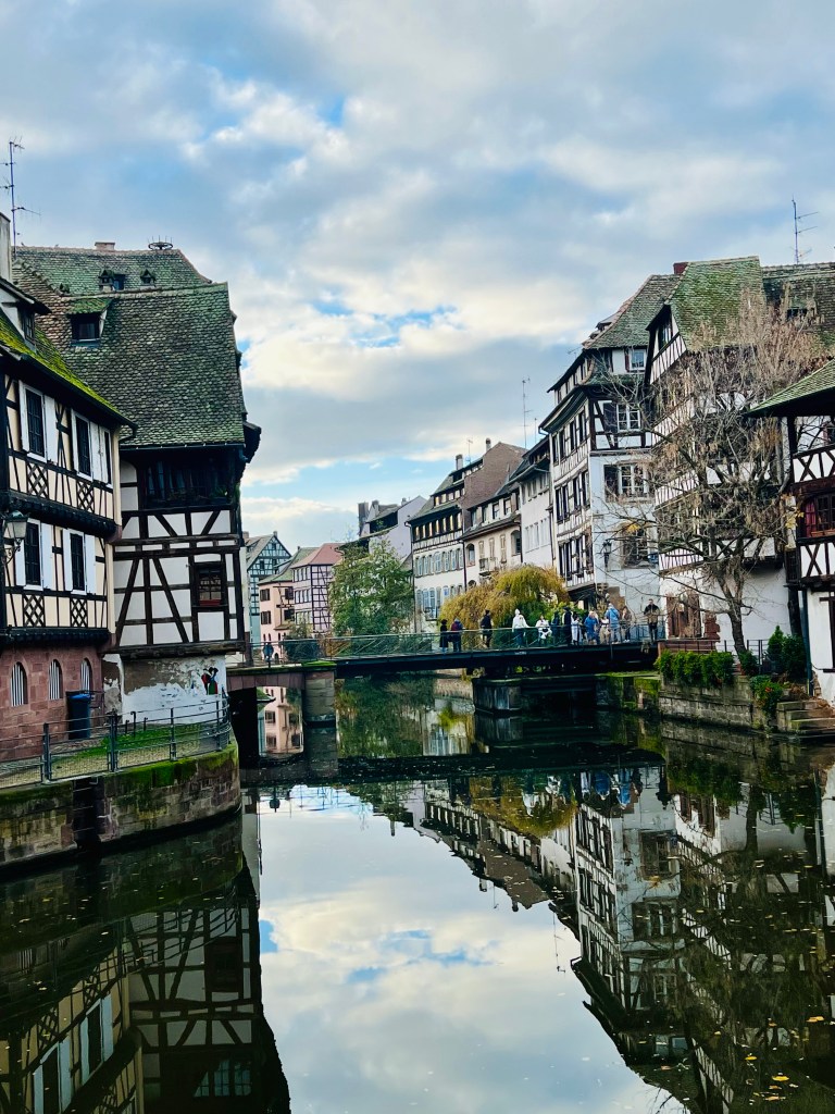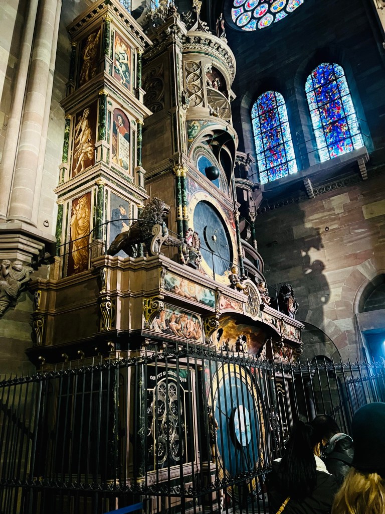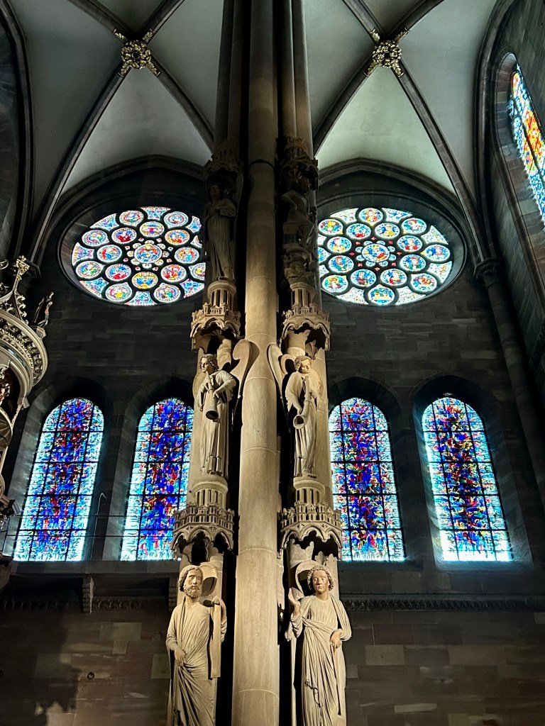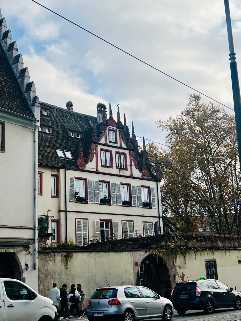Une visite qui vaut le détour si vous êtes en Alsace! Et puis, il faut se le dire, ça fait changement des colombages! Parlant de ce style, on a ensuite déboulé dans quelques villages, pittoresques à souhait! Nous avons débuté par Sélestat, 3e ville en importance en Alsace. C’était jour de marché et le marché de Noël était ouvert. Il y avait du monde, mais pas trop de touristes. On a goûté une sorte de galette de pommes de terre mais n’avons pas trouvé de restaurant « convenable » ce qui signifie, selon nos critères : « où l’on mange assis, à la chaleur, sans y laisser notre peau ». Ça semble simple comme ça mais DU COUP, ça ne l’est pas! On a trouvé La Mosaïque convenable à Bergheim.