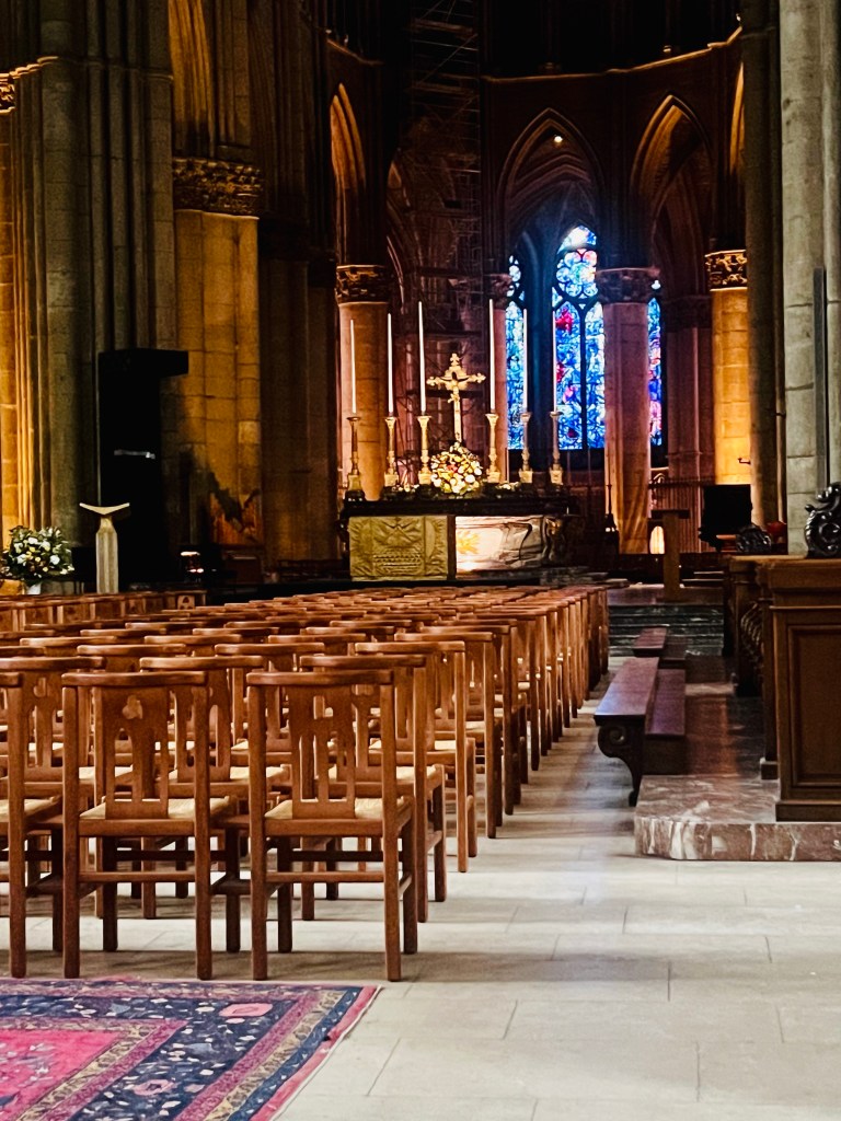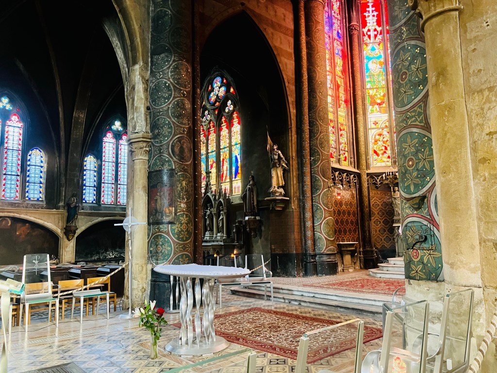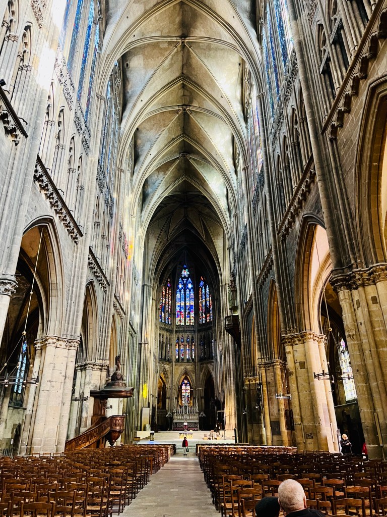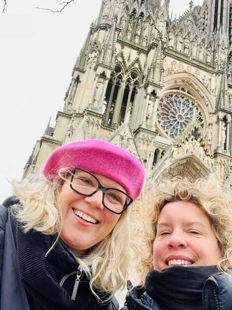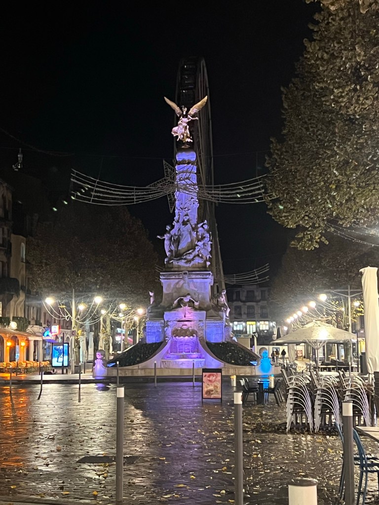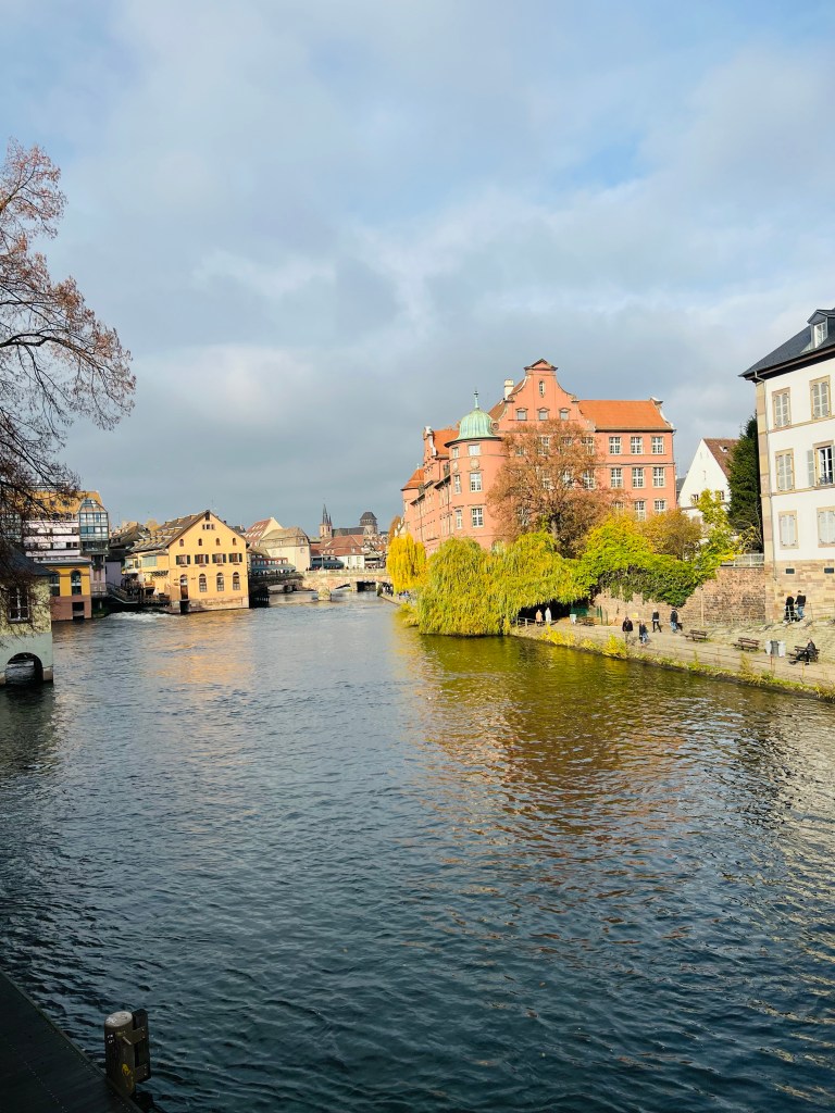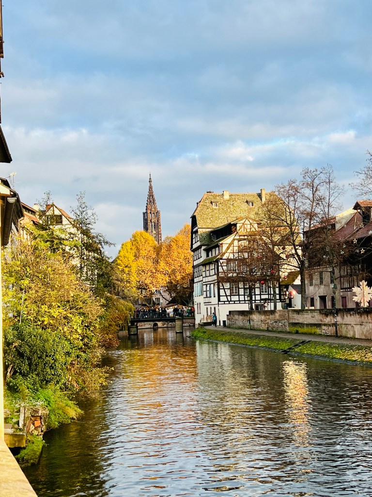 Une visite qui vaut le détour si vous êtes en Alsace! Et puis, il faut se le dire, ça fait changement des colombages! Parlant de ce style, on a ensuite déboulé dans quelques villages, pittoresques à souhait! Nous avons débuté par Sélestat, 3e ville en importance en Alsace. C’était jour de marché et le marché de Noël était ouvert. Il y avait du monde, mais pas trop de touristes. On a goûté une sorte de galette de pommes de terre mais n’avons pas trouvé de restaurant « convenable » ce qui signifie, selon nos critères : « où l’on mange assis, à la chaleur, sans y laisser notre peau ». Ça semble simple comme ça mais DU COUP, ça ne l’est pas! On a trouvé La Mosaïque convenable à Bergheim.
