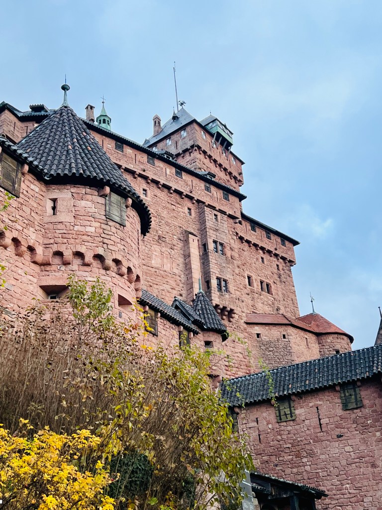 Ce château, en partie détruit par diverses guerres, abandonné par la suite, a été offert par Sélestat à Guillaume II de Hohenzollern en 1899. Ce type a vraiment fait du bon boulot! Peut-être pas de ses mains mais de ses poches! Sur place, on explique et on voit l’ouvrage qui a été abattu pour redonner son lustre à ce modèle de château-fort et c’est magistral! Les travaux ont très bien été documentés pour l’époque, photos à l’appui! Je vous invite à aller lire et découvrir ce lieu ici : histoire du Haut-Koenigsbourg et d’apprécier les photos de Nathalie :
