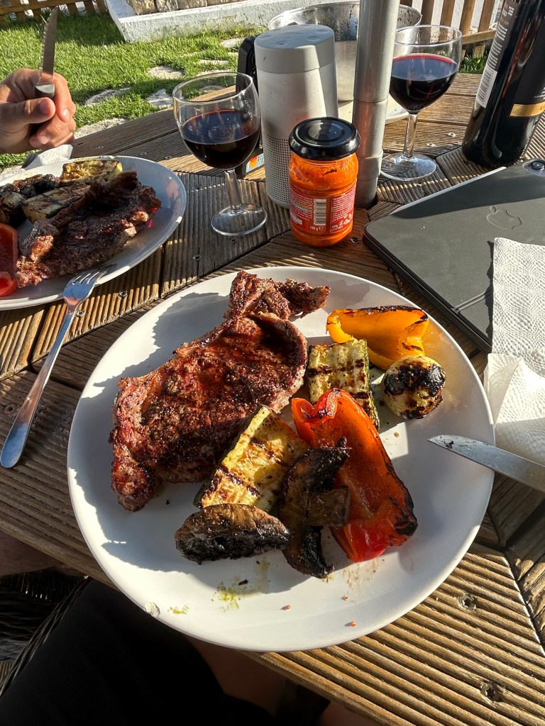 La balade nous ayant creusé l’appétit, on met le GPS sur Lagos, que l’on parcoure rapidement mais qui nous donne envie de revenir. On mange des petiscos, on marche dans les jolies ruelles, on visite quelques boutiques et on retourne au bord de la mer, dans notre appartement où l’on se fait griller des poitrines de poulet qui marinaient depuis la veille. C’est le dernier souper qu’on se cuisine. Hugues nous grillent ça sur le charcoal, avec des tomates et champignons portobello. C’est fou tout ce qu’on réussit à faire avec les quelques ingrédients qu’on s’est procurés depuis deux semaines. Depuis longtemps, j’apporte toujours 4 essentiels dans ma valise : une glacière molle, une poivrière, mon couteau Opinel et un limonadier. Sur place, on garde les premières bouteilles d’eau qu’on utilise par la suite comme Icepack pour les pique-nique et trimballer la bouffe entre les destinations. On choisit souvent nos logements en s’assurant qu’on peut y cuisiner. Notre première épicerie? Du beurre, de la mayo, de la moutarde forte, de l’huile. Cette fois-ci, on a trouvé un espèce de pesto de piments forts et un sel aux herbes dans un petit moulin. Avec ça, on a fait des miracles! Nos meilleurs soupers n’ont pas été dans les restaurants, on est des kings!