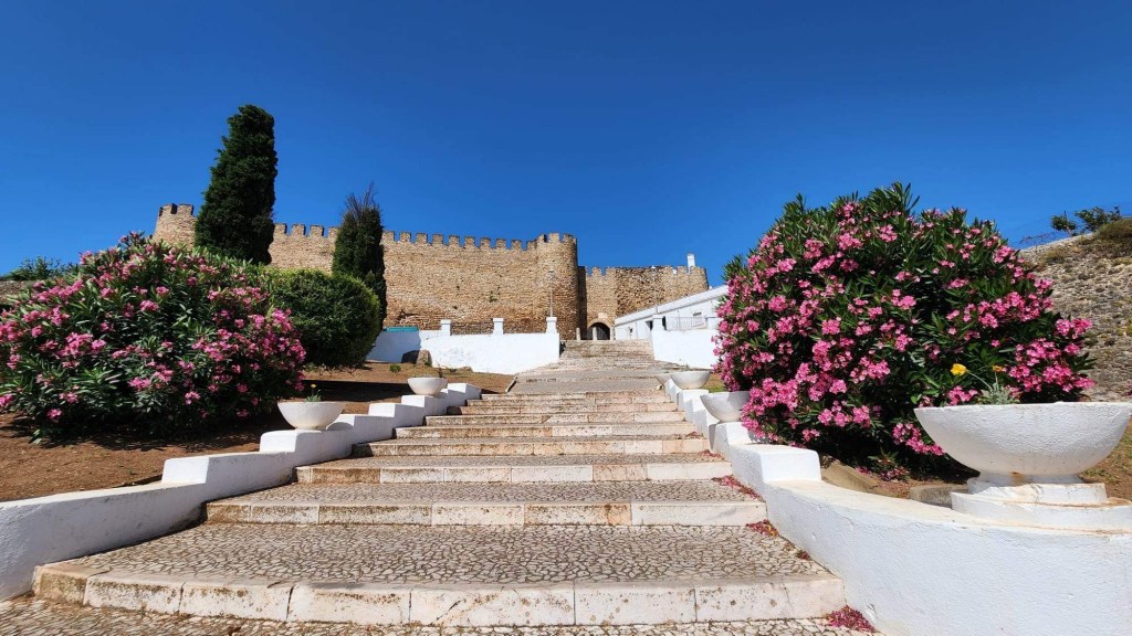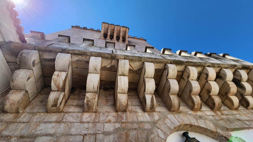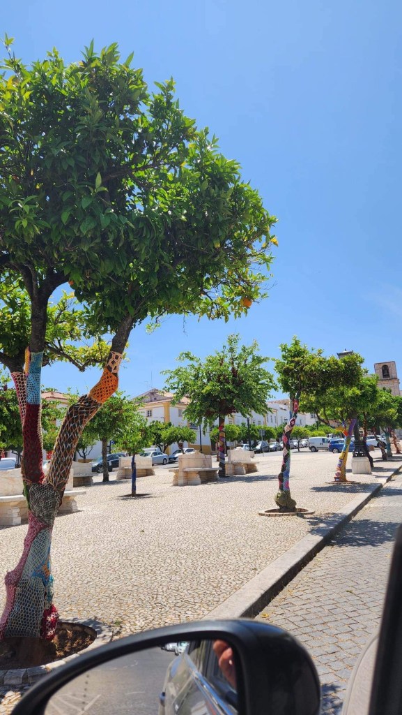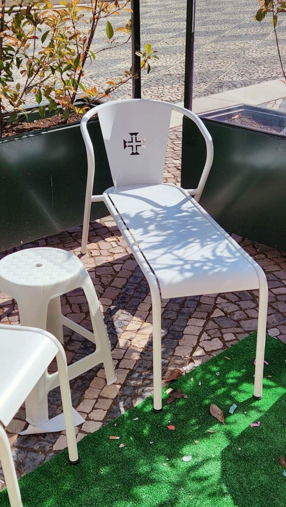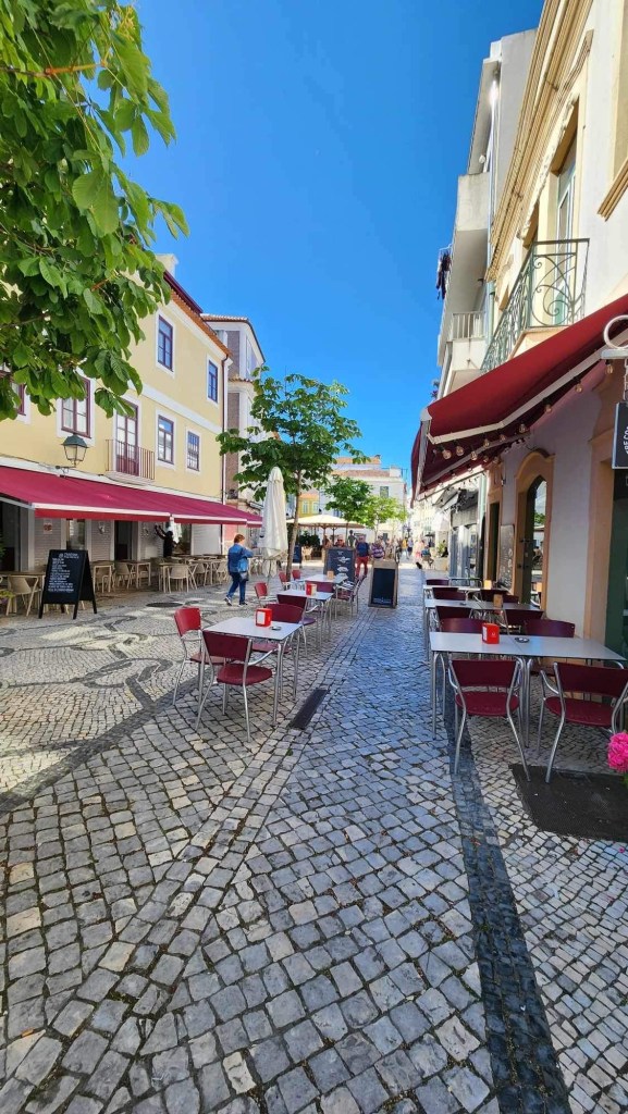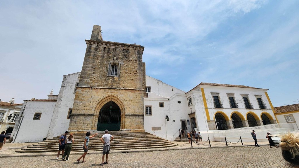 Ensuite, on entre dans Faro! C’est la capitale de l’Algarve, qui semble toutefois avoir gardé un peu d’amour-propre. On peut se garer près du centre sans trop de chichis même si on est samedi. On parcoure ensuite un quartier piétonnier avant d’entrer entre ses murs. Sur l’Arco da Vila, des cigognes s’en donnent à cœur-joie, à becs-joie, c’est tout un spectacle qu’elles nous offrent. De vieilles églises, des musées, c’est une belle ambiance! On se retrouve à chercher un endroit où se ravitailler et les terrasses sont soit bondées, soit désertées. La terrasse de l’école de cuisine et d’hôtellerie nous interpelle. C’est généralement bien d’investir dans l’avenir! Espérons que ce le sera pour eux! Le temps qu’ils ont mis avant qu’on nous apporte nos plats!!!! Un siège! Sur la terrasse voisine, ça arrivait, commandait, bouffait et partait! De notre côté, il a fallu sortir les dés pour que le temps passe entre chaque étape!