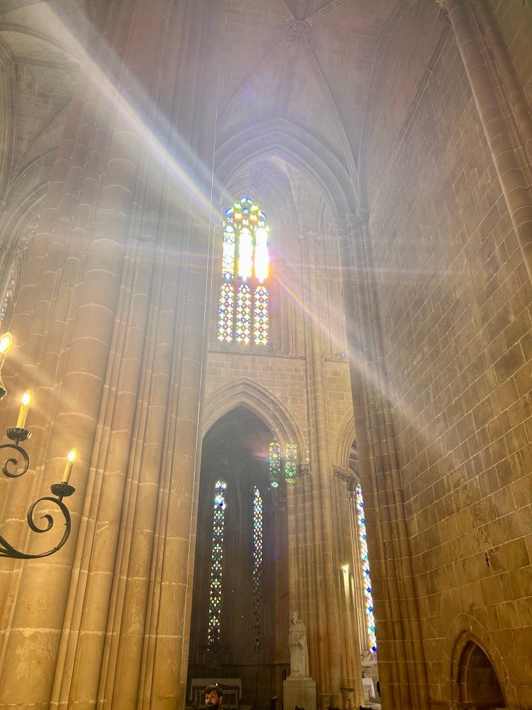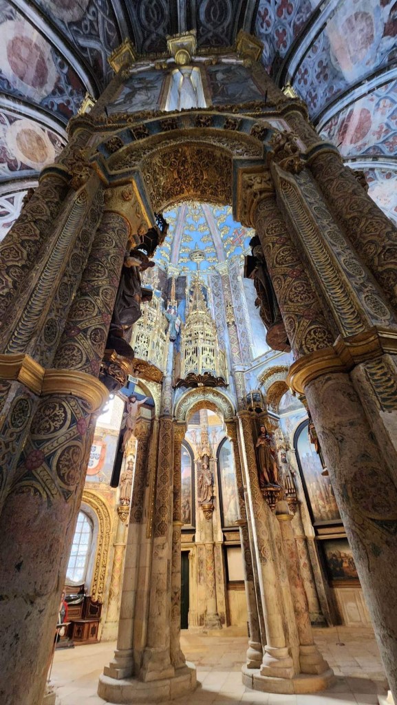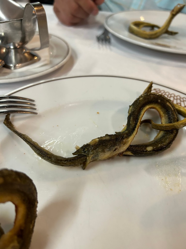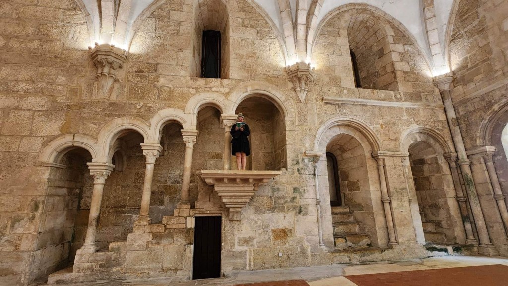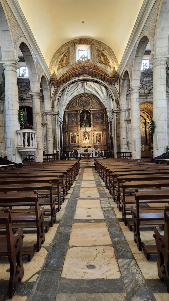 Ensuite, on entre dans Faro! C’est la capitale de l’Algarve, qui semble toutefois avoir gardé un peu d’amour-propre. On peut se garer près du centre sans trop de chichis même si on est samedi. On parcoure ensuite un quartier piétonnier avant d’entrer entre ses murs. Sur l’Arco da Vila, des cigognes s’en donnent à cœur-joie, à becs-joie, c’est tout un spectacle qu’elles nous offrent. De vieilles églises, des musées, c’est une belle ambiance! On se retrouve à chercher un endroit où se ravitailler et les terrasses sont soit bondées, soit désertées. La terrasse de l’école de cuisine et d’hôtellerie nous interpelle. C’est généralement bien d’investir dans l’avenir! Espérons que ce le sera pour eux! Le temps qu’ils ont mis avant qu’on nous apporte nos plats!!!! Un siège! Sur la terrasse voisine, ça arrivait, commandait, bouffait et partait! De notre côté, il a fallu sortir les dés pour que le temps passe entre chaque étape!
