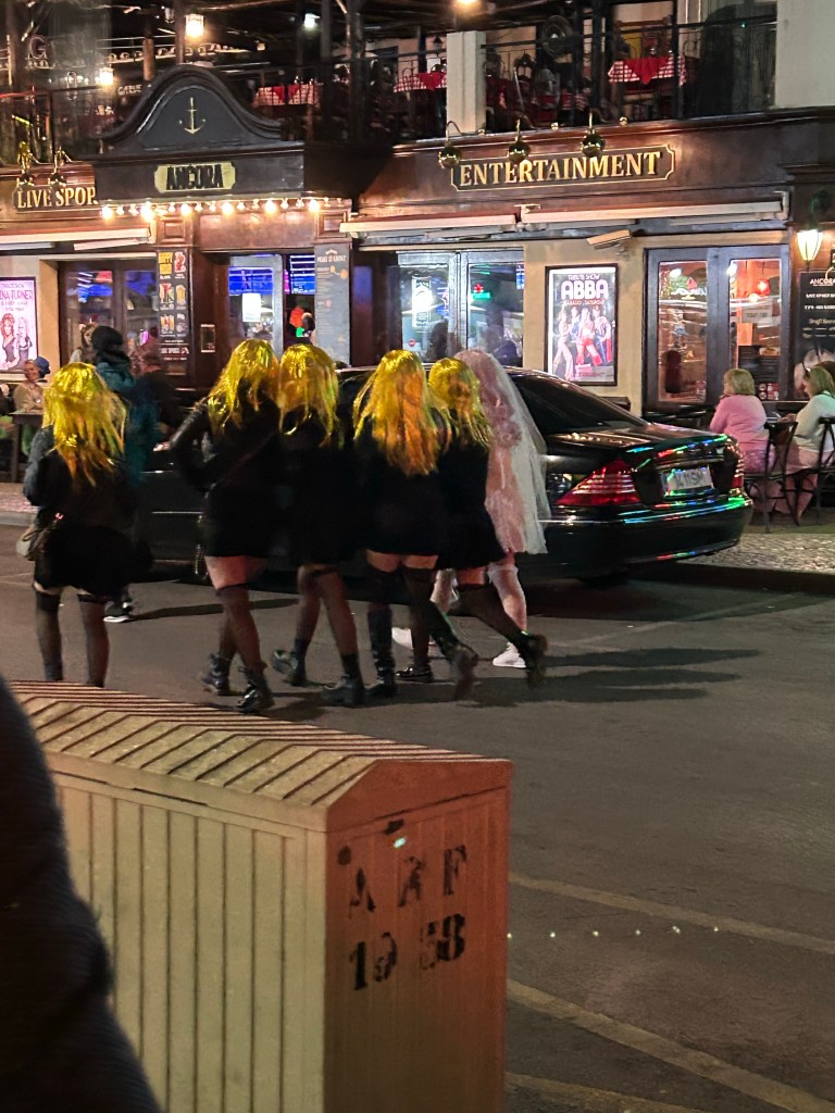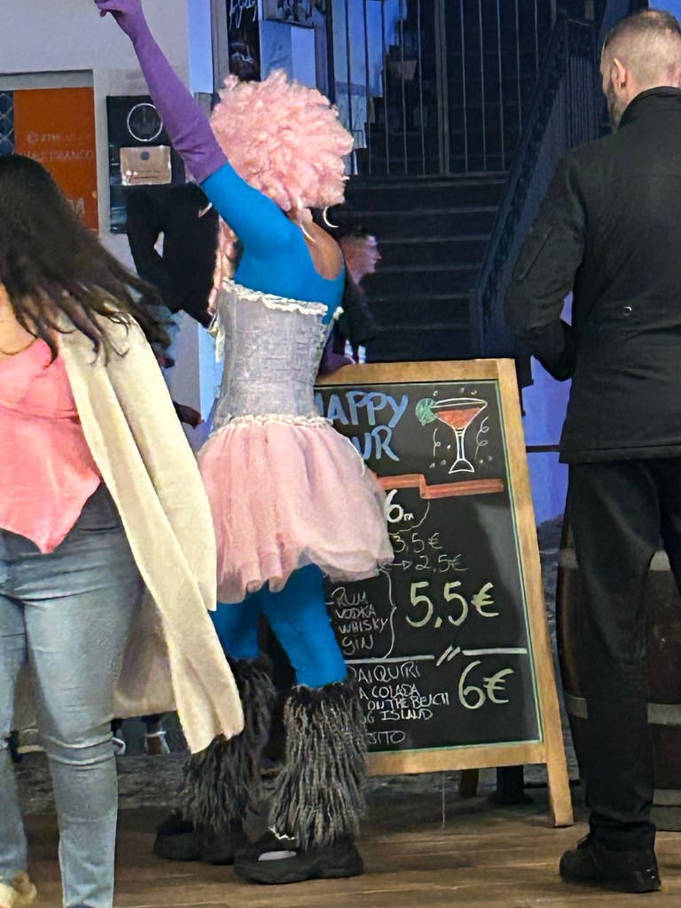 Retour au zoo, notre coin touristique est bien tranquille… Il ne fait pas chaud, c’est venteux et pas particulièrement ensoleillé: on comprend que l’attrait est moindre pour les vacanciers. Au souper, à l’aide du petit four en brique sur notre terrasse et d’un restant de poche de charcoal, on se fait cuire des steaks très bons. C’est vraiment mort en bas. Pas âme qui vive et on se demande si on ne va pas se coucher tranquilles. Il est 10h, j’offre à Mélanie de monter la rue des bars (à ce qu’on nous a dit) pour prendre un digestif. Une montée ardue après une bouteille de vin et un bon repas, mais de l’autre côté du rond-point nous attend un monde carnavalesque et tonitruant! C’est indescriptible! Un défilé de bars sportifs, des karaokés, des spectacles hommage, des restos sur le pouce, des boutiques à cossins illuminées tous ouverts sur la rue la musique de l’un plus forte que celle de l’autre. Des gens partout, de l’alcool à profusion, des cris, du dancing people; on vient de changer d’univers ! Un prend un cocktail au bout de la rue car il n’y a plus rien après. C’est bien, mais cher. On redescend et on arrête dans un bar où il y a un band pas trop pire jouant des succès rock de notre jeunesse. Les entractes contrastent pas mal avec le chikaboum et l’animation par les entertainers du bar. Tout y passe: jongleries de bouteilles, danse sur le comptoir, train humain, etc. On s’enferme là jusqu’à minuit. Misère…