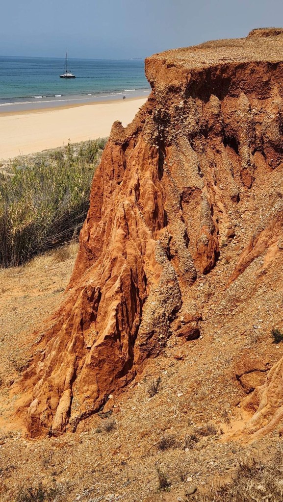 Nous avons néanmoins fait une belle journée en faisant une randonnée le long des plages aux falaises rouillées près de Vilamoura. Un stationnement, certes payant mais pas tant, nous y donne l’accès. Parsemées de montées et descentes, on a pu observer les plages, la mer, les falaises et les nombreux restaurants-bars accueillant les randonneurs et baigneurs. De la fichue de belle nature!!!
