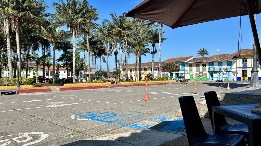Petit réveil tranquille, pas d’excursion programmée où l’on doit se pointer, juste un bon cappuccino, un jus d’oranges frais et un bon déjeuner en compagnie de deux gentilles hollandaises, Yoleen et Lucy – excusez-moi les filles si j’ai mal écrit vos noms! Elles étaient nos voisines à Salento et elles ont aussi séjourné au Rango de Medellin en même temps que nous. Nous espérons les recroiser dans quelques jours sur la côte caribéenne.