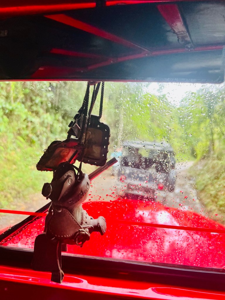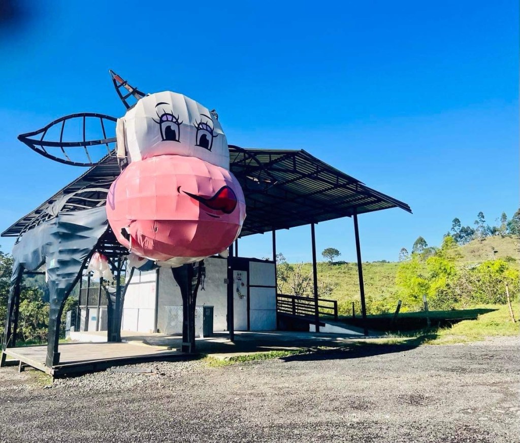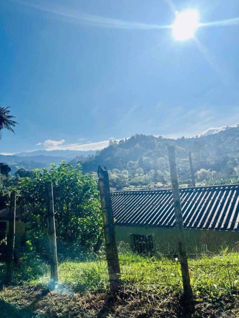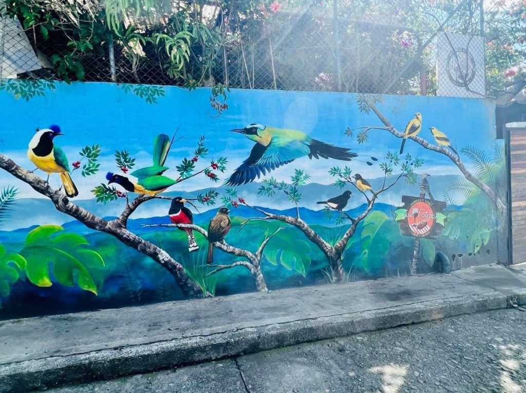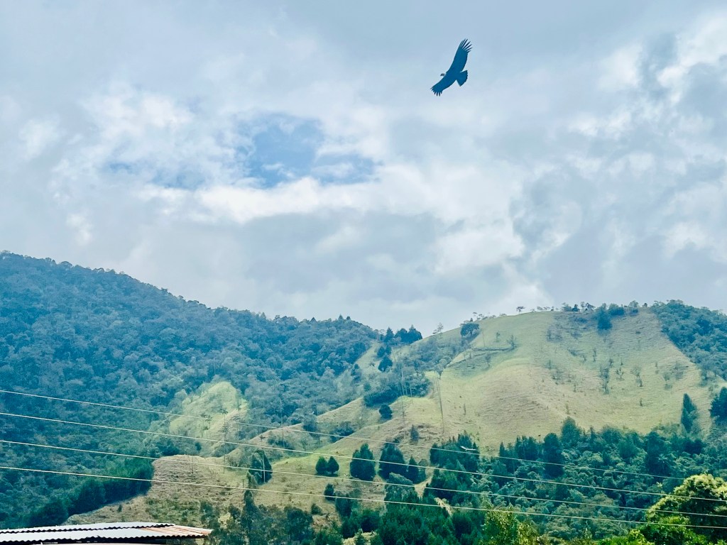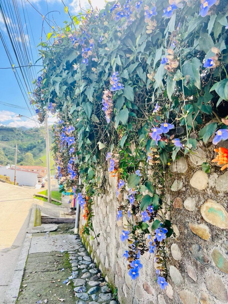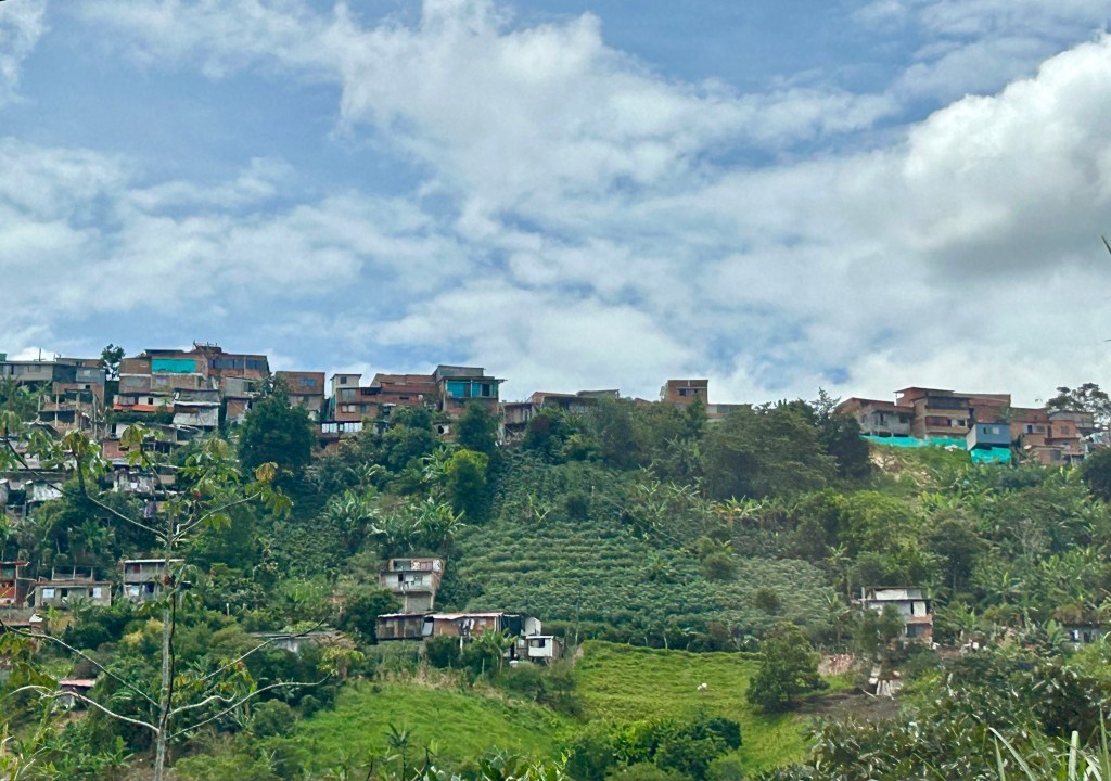 En ressortant on trouve un endroit pour une limonade puis on retourne à la station de métro. De là, on se rend au premier télécable depuis notre arrivée à Medellin. Il y a du monde au pied carré, c’est intense! Après trois arrêts, on descend à une station pour prendre un autre télécable qui nous mène au parc Arvi. C’est ici qu’on prend conscience de l’étendue de la deuxième grande ville de la Colombie. Sur les toits de tôle, plusieurs inscriptions remerciant le maire de Medellin qui a instauré ce système. C’est dimanche et c’est jour de lessive aussi; les toits servent entre autre de séchoir! À ce niveau, plus aucune voiture, plus de route, pas de moto non plus, un chemin de terre rougeâtre, des jeunes qui jouent au ballon, les femmes qui étendent leurs lessives et des monsieurs qui rafistolent leur abris de fortune. Dans ce quartier, pourtant difficilement accessible à pieds, ça semble plus propre que sur le long du cours d’eau longé en métro. C’était bondé de vidanges et de campements de fortune.
