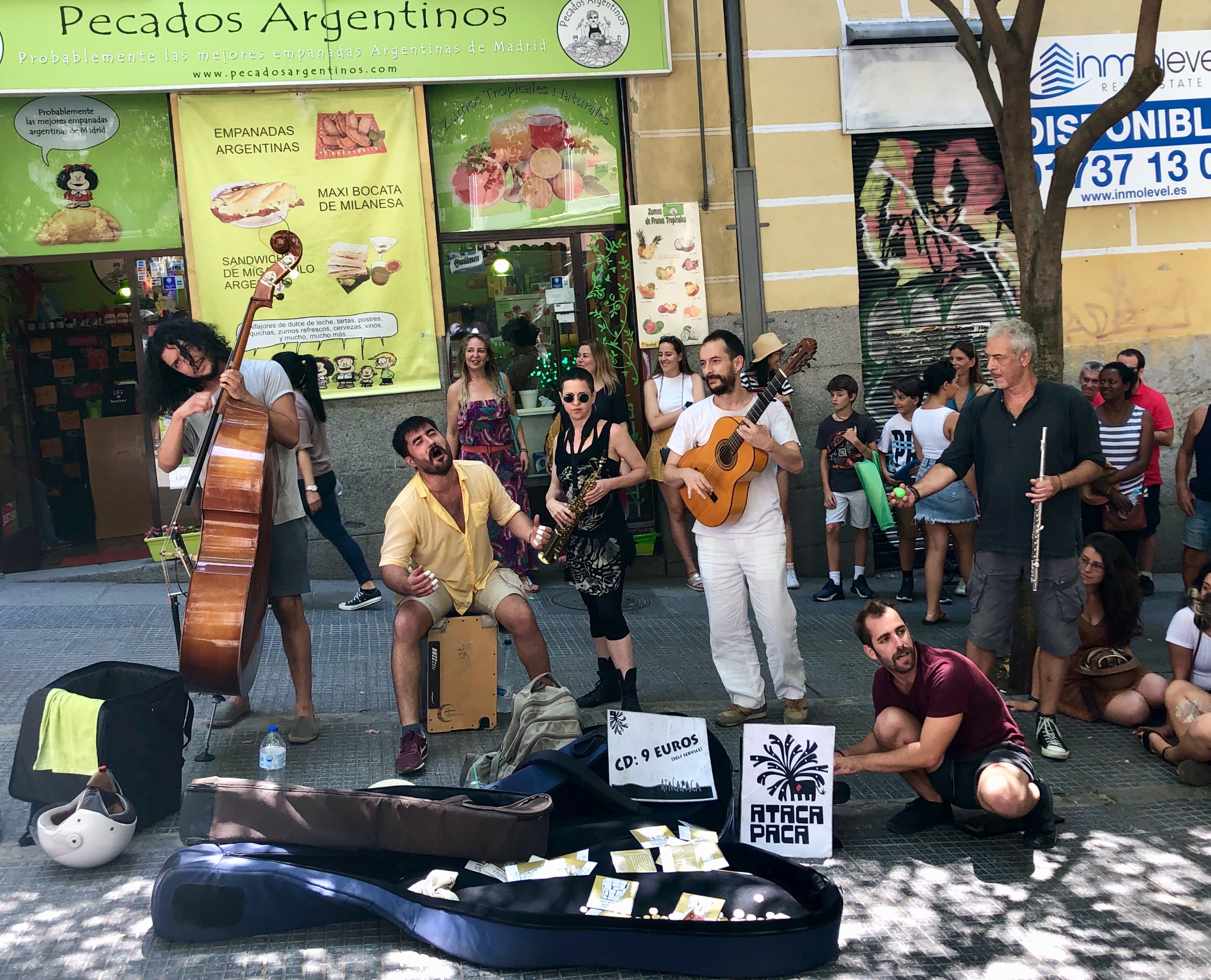Sans doute le plus beau moment à Madrid nous attendait. La troupe d’Ataca Paca et ses magnifiques interprétations de chansons, jouées, mimées. On est retourné les voir et les entendre pendant un bon moment et acheter leur CD! Des artistes talentueux et vivants!