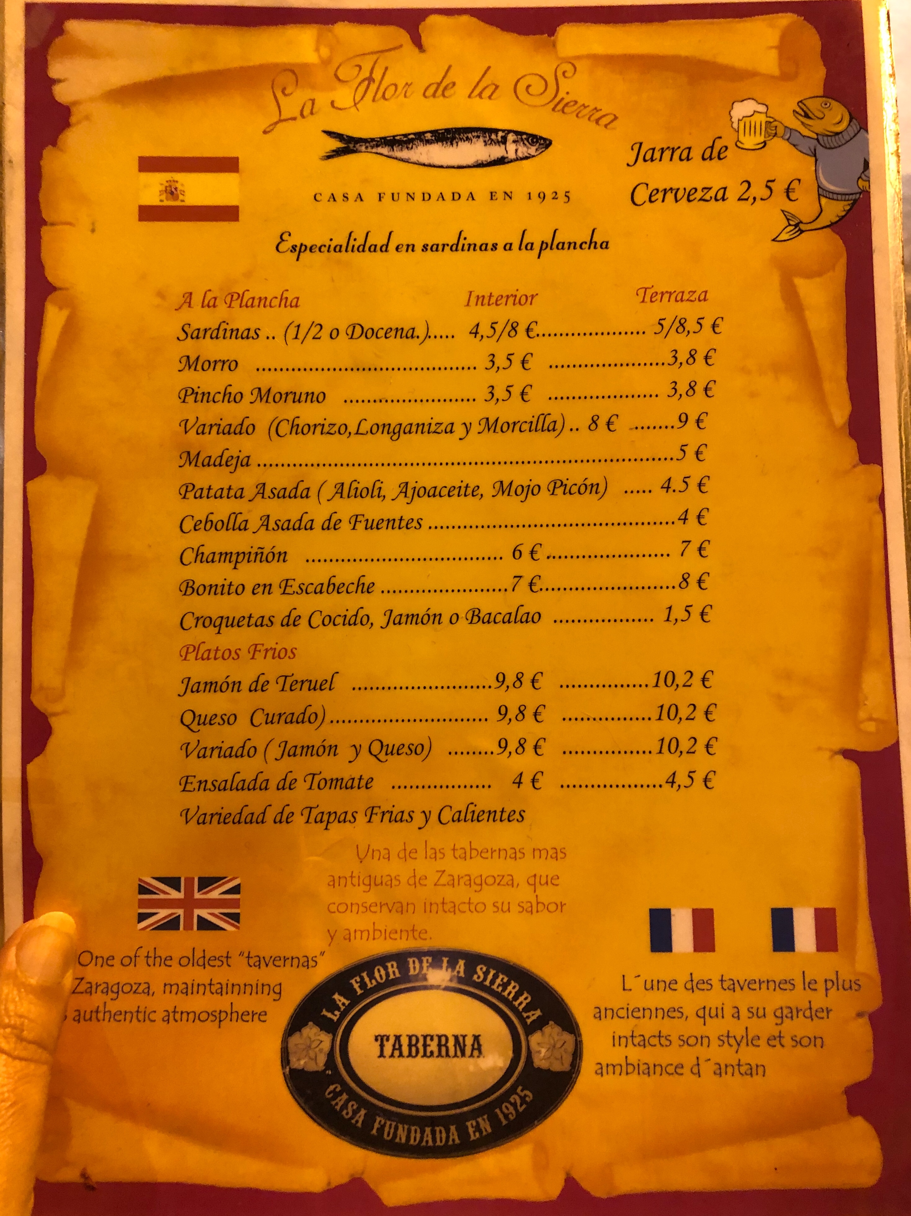 Les nombreuses « Plaza », la verdure et les arbres omniprésents, des cafés et tabernas, dont l’illustre Flor de la Sierra, où nous avons soupé, nous ont charmés. Une ville équilibrée à hauteur d’homme comme on les aime… Parmi les églises, la Basilique de Nuestra Señora del Pilar vaut le détour pour ses coupoles aux tuiles colorées et le pilier où la Vierge Marie aurait posé le pied lors d’une apparition à Saint-Jacques en l’an 40. C’est un incontournable de ce lieu de culte car on peut toucher une partie de cette colonne creusée par les nombreux baisers et touchers des pieux qui s’y recueillent.