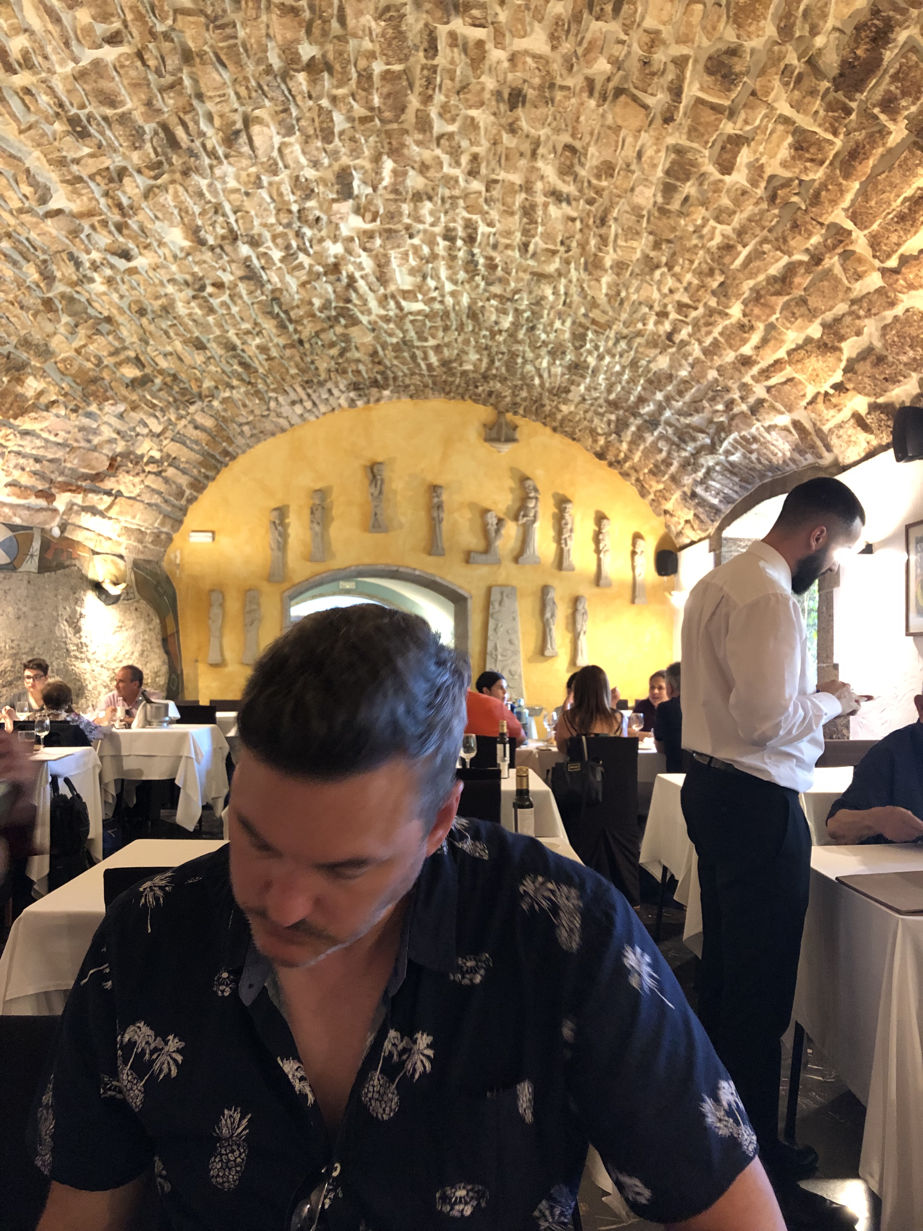 Quelques étourdissements et détours plus tard, on s’aperçoit que le site est très fréquenté par les touristes, mais admirablement aménagé. L’hôtel du monastère est au bout de la route, au coeur de la place centrale, et offre une vue plus que superbe sur les environs. Un incontournable dès les premières secondes et nous n’exagérons pas! Ayant profité d’une formule « tout inclus », nous sommes gavés comme des oies lors du dîner, du souper et du petit déjeuner. Nous ne nous attendions pas à trouver un restaurant gastronomique ici! Le dîner nous a scié les jambes littéralement car nous espérions un buffet ou une sandwich, mais pas un trois services avec crêpes de fruits de mer et gaspacho particulière en entrée, ragoût de lapin et joue de porc avec l’os de la mâchoire comme plat principaux et fondant au chocolat  en dessert… Bref, orgie de bouffe et orgie visuelle du décor enchanteur. Franchement, pour environ 150$ canadiens, on ne peut trouver mieux avec en prime un cadre idyllique. Nous assistons aux vêpres le soir même et aux « laudes » très tôt le lendemain matin. Un privilège d’entendre leurs chants et se recueillir à notre manière pour profiter de nos derniers moments en terre espagnole.