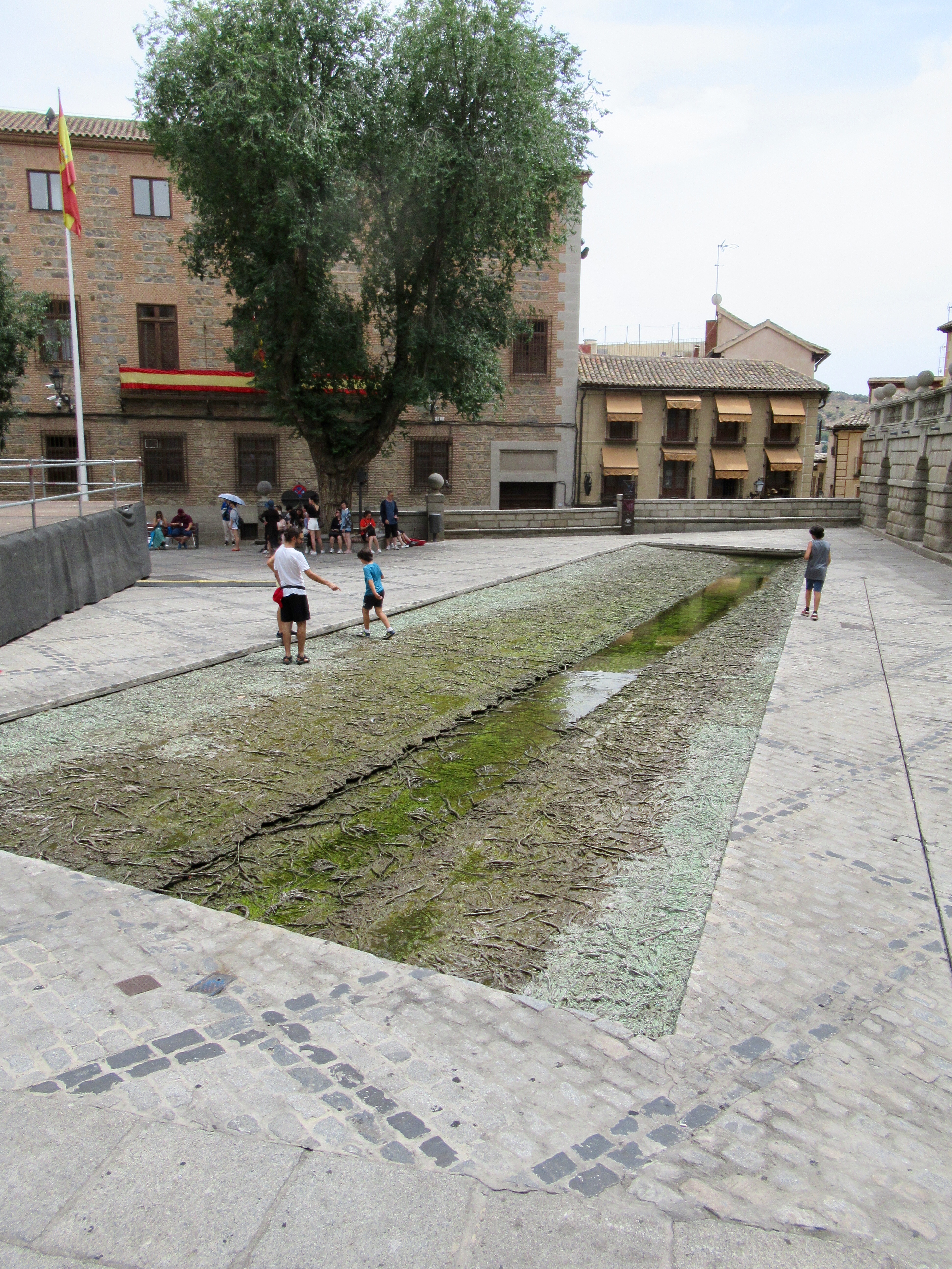 Nous aurions sans doute apprécié plus Tolède si nous avions eu le temps de faire quelques visites alors que nous l’avons marchée rapidement, à la recherche des souvenirs parfaits… Le choix est impressionnant. Les rues sont bordées de boutiques offrant pratiquement toutes les mêmes typiques pièces damasquinées et couteaux aux lames travaillées. Comme dans n’importe quoi, la qualité varie. On reçoit maintes explications et on nous indique les objets fait mains ou à la machine. On peut observer certains artisans à l’œuvre, quel travail minutieux! La pâte d’amandes apparaît dans l’autre tiers de vitrines sous toutes les couleurs et aspects. Clairement touristique, mais on aurait aimé l’explorer à fond si ce n’était du temps qui manquait…