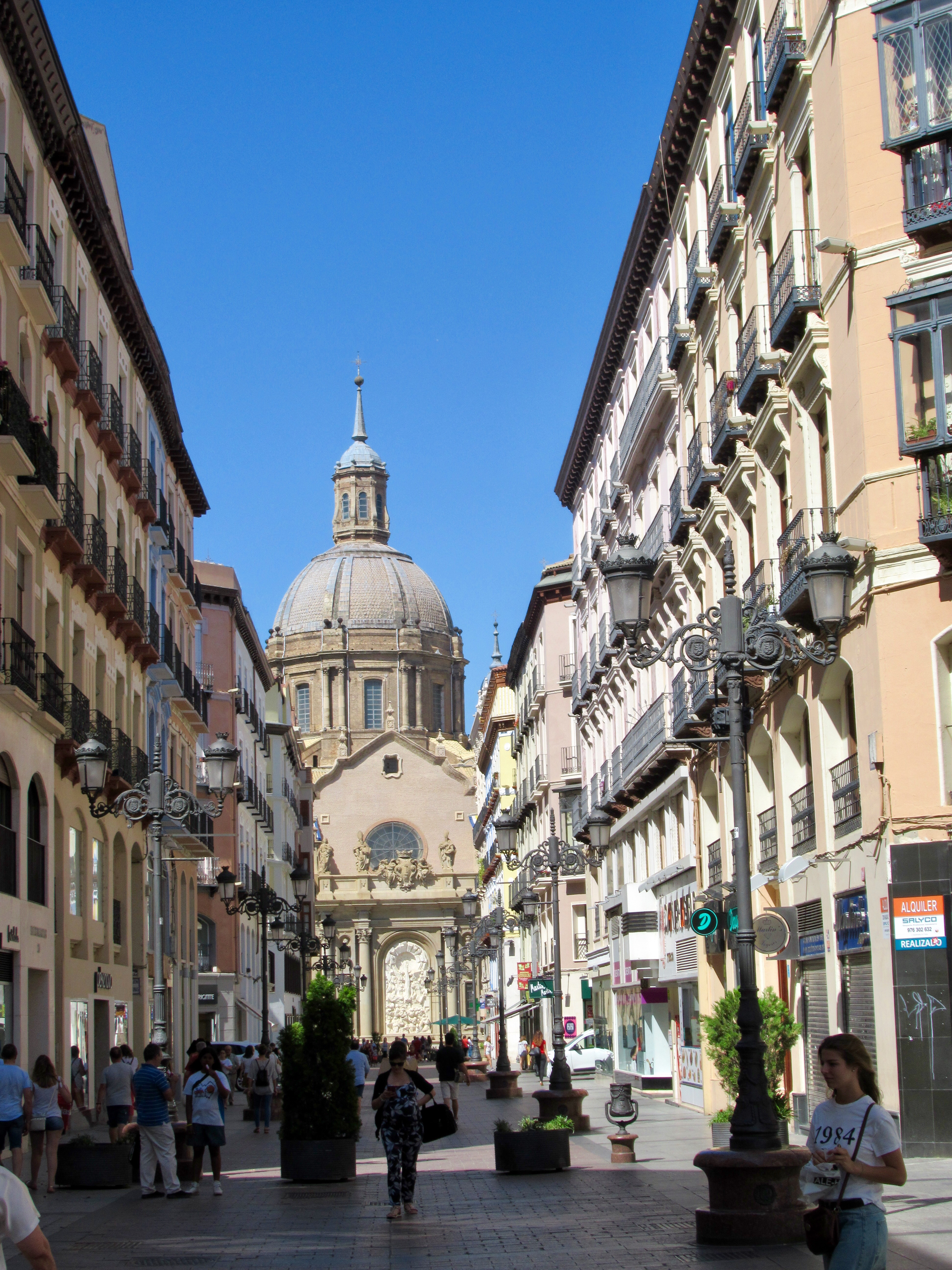 Quelques coins de rues suffisent à nous surprendre. C’est beau, propre, sympathique avec une magnifique grande place. Le vieux Zaragoza, principalement piétonnier, avec une longue rue bordée de boutiques est encerclé par une grande avenue qui borde l’Èbre, fleuve qui coupe la ville en deux que l’on peut traverser sur le magnifique El Puente de la Piedra.