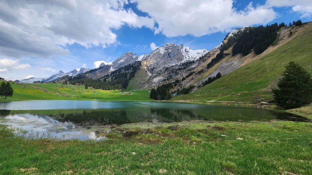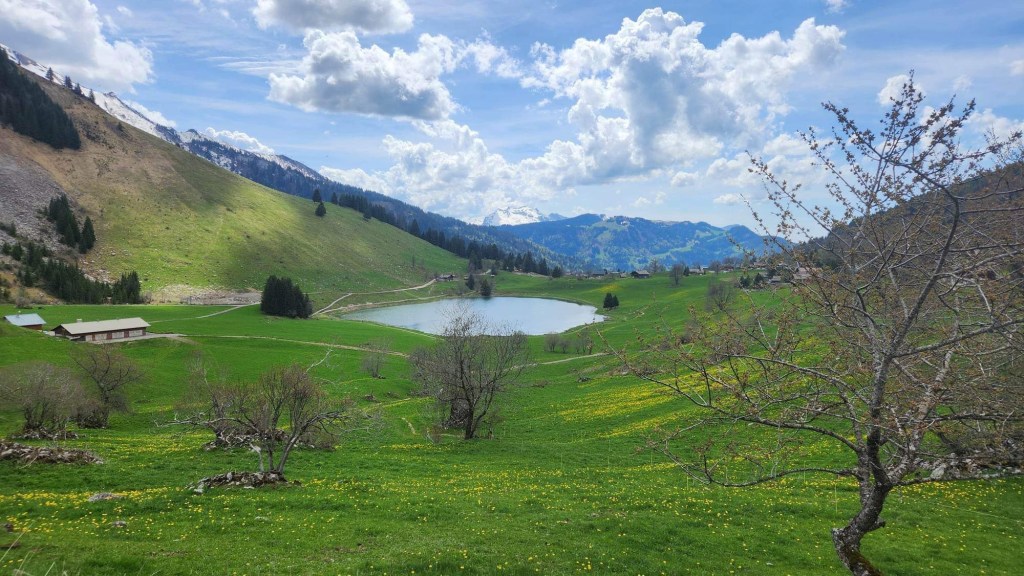 On déguste ce succulent festin avant de prendre la route pour la montagne, ronronpetitpataton dans la voiture pour Michèle, Hugues et Mélanie jusqu’au Lac des Confins, au pays d’Heidi pour reprendre l’image amenée par une amie. Belle randonnée dans la montagne et autour du lac avec nos deux jeunesses, Jef et Michèle. Paysage idyllique!