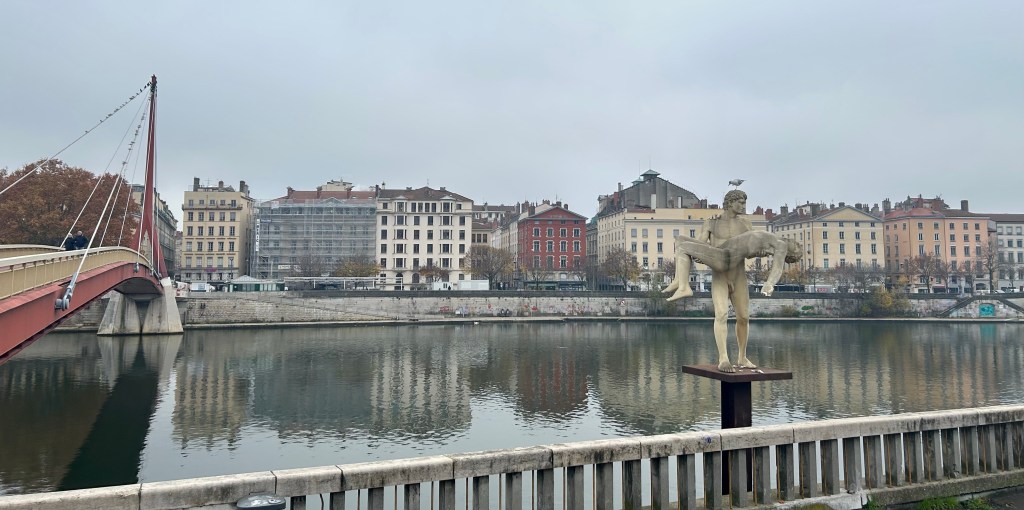 Je paie assurément pour le soleil de la veille car toute la journée, c’est gris, beige, sombre et froid. Un froid « glacial » s’abat sur Lyon, en prime. Ce n’est pas moi qui le dit, c’est écrit dans les journaux d’ici!