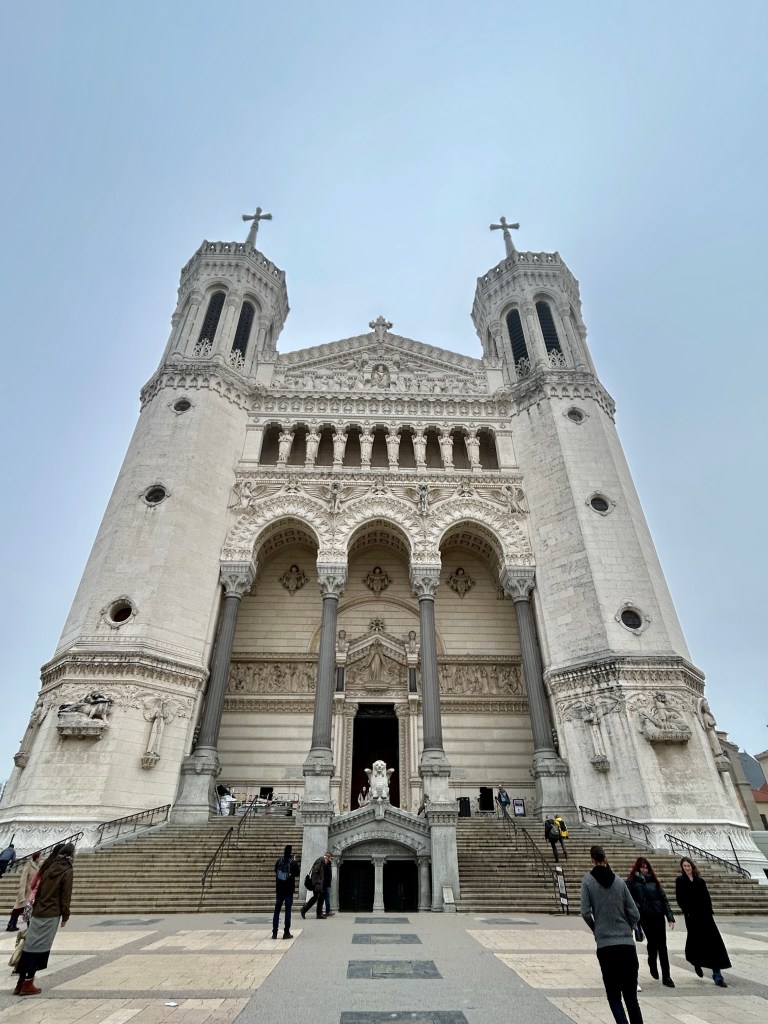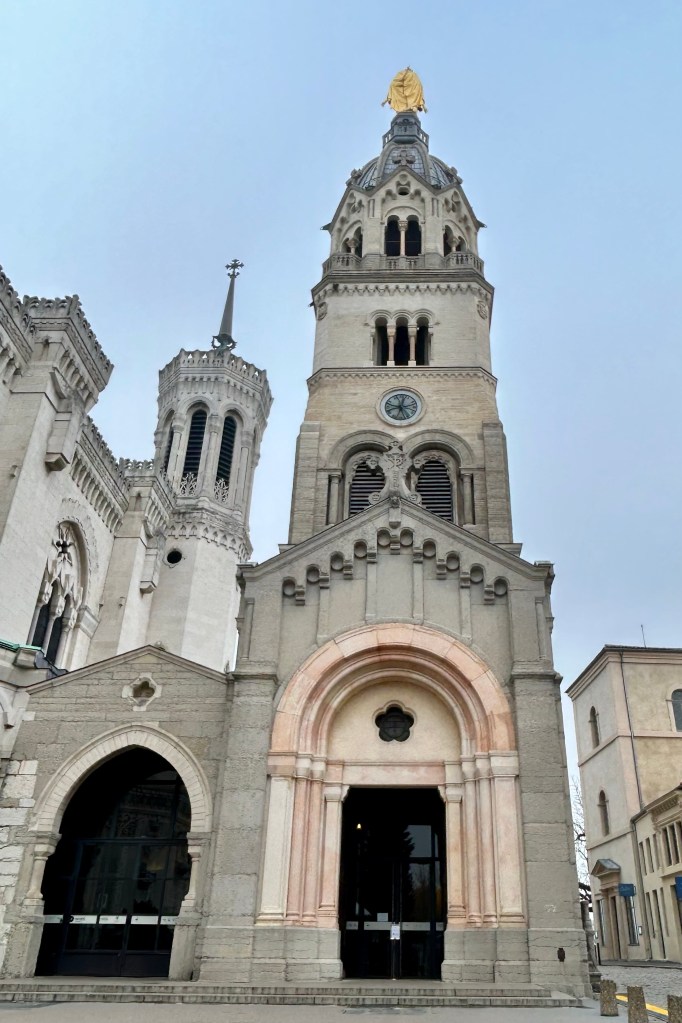 La Basilique Notre-Dame-de-Fourvière – 19e siècle – domine la ville de Lyon. C’est elle que je vois depuis la rue de mon appartement!