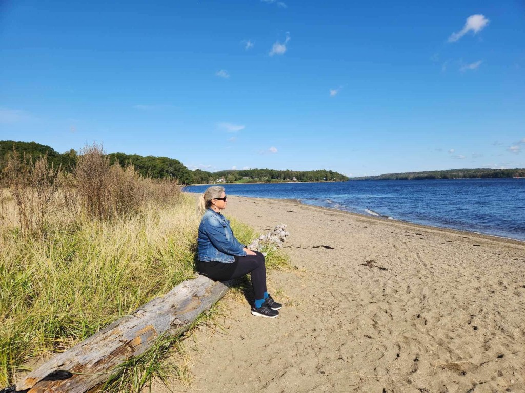 En prime, plus nous descendons dans la campagne qui longe cette Côte Est, plus nous apprécions ses paysages. En ce temps de l’année, les couleurs des arbres, contrastant avec les verts des foins des marais et les bleus des lagunes, nous séduisent assurément. Nous sommes émerveillés, autant par les nuances offertes par la nature que par celles des maisons en déclin de bois, roses, vertes, jaunes, bleues, etc.