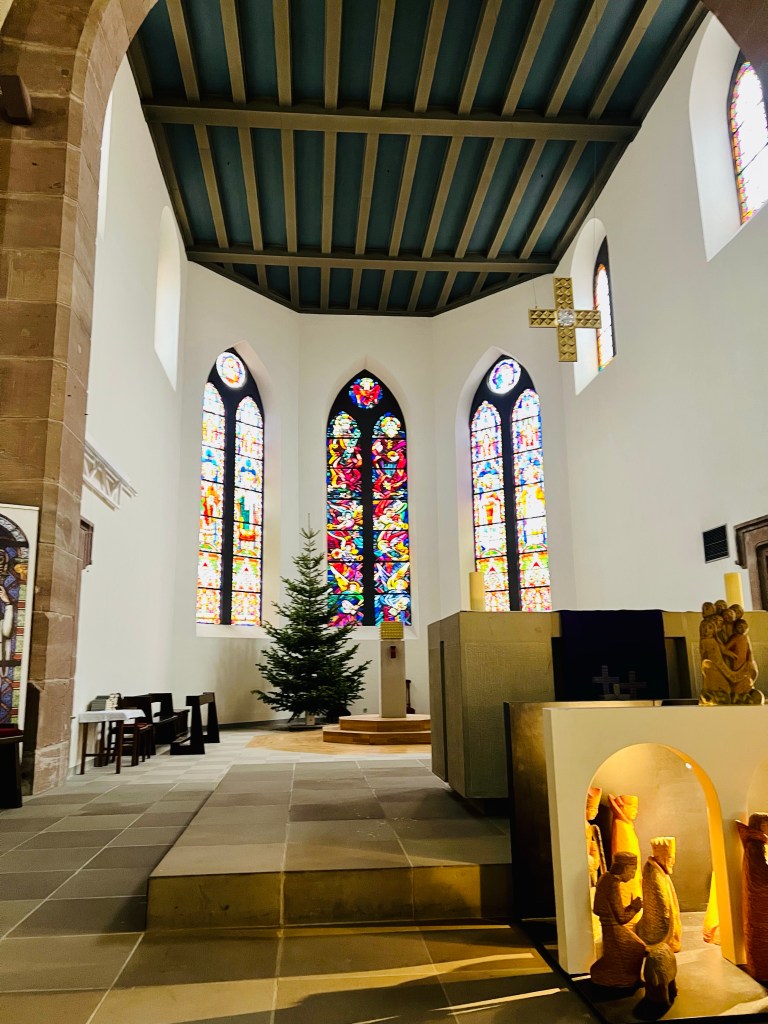 Munster, en ce mercredi, fin d’avant-midi, est assez tranquille. On y trouve toutefois notre compte dans une lumineuse église, entre autres. Vous remarquez une certaine constante ici? Je suis comme une plante verte en manque, je penche vers la lumière!