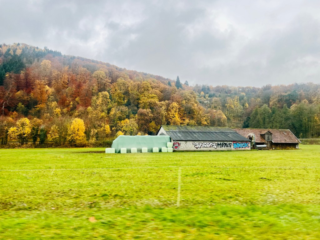Mercredi, 30 novembre 2022. Aujourd’hui, on vise se rendre au Grand Ballon, pour un coup d’œil du haut de ses 1400 et quelques mètres. On monte, on vire, on dévire, encore et encore. Au tournant d’une falaise, mince espoir lumineux! J’y crois, je le veux vraiment fort! Mais non, quelques minutes plus tard, on se heurte à une route bloquée. On était rendues à approximativement 1000 mètres. Bon sang! Y’a même pas de neige… J’espérais tant dépasser les nuages et l’épaisse brume pour un rayon de soleil et un aperçu de la région de là-haut. Faudra revenir!